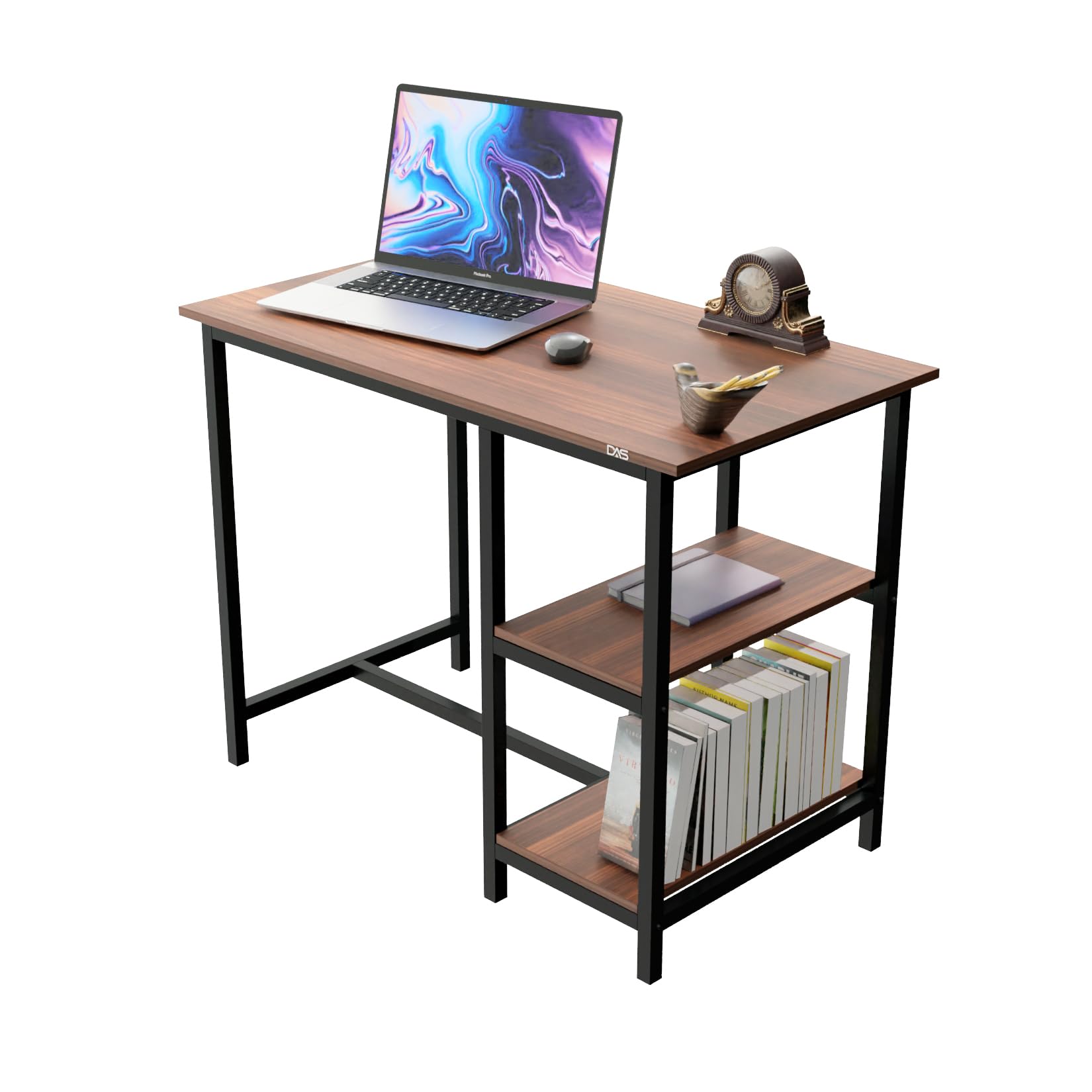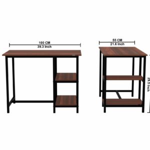 Aanya Engineered Wood Work Table with Metal Frame, Shelves for Home Office, 100 x 55 cm Flowery Wenge and Black Finish (Classic Walnut)