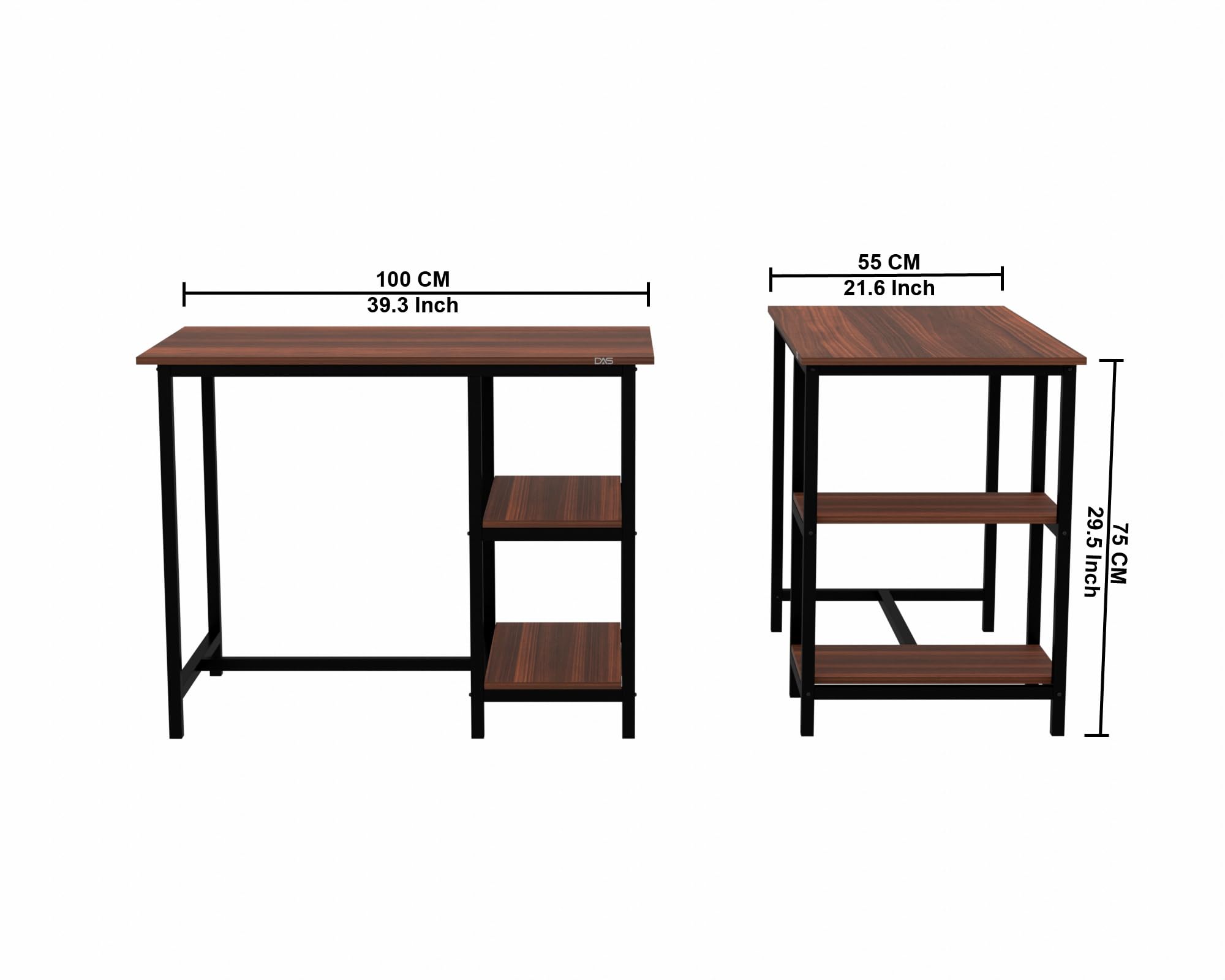 Elevate your home office with this sleek and functional work table. Its sturdy construction, featuring a wooden tabletop and metal frame, ensures durability and stability. The ample surface area provides ample space for your laptop, documents, and office essentials, allowing you to work efficiently. Complemented by open shelves, this table offers convenient storage for books, files, or decorative accents. With its minimalist design, it seamlessly blends into any interior decor. Crafted with attention to detail, this work table is a practical and stylish addition to your workspace, enabling you to tackle tasks comfortably. Dimensions: 100 cm (length) x 55 cm (width) x 75 cm (height).