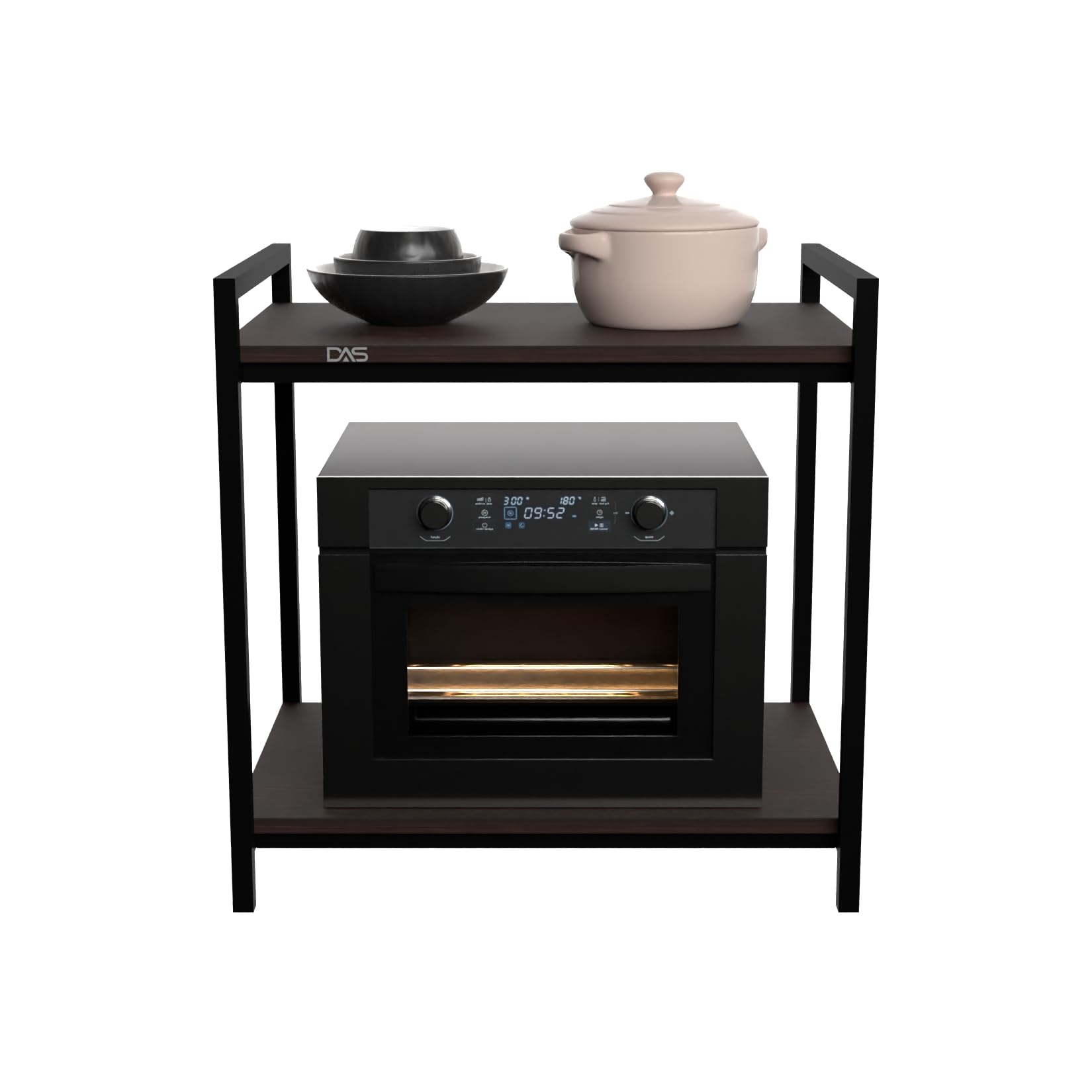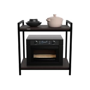 Aarna 2-Layer Microwave Stand, OTG Stand, Microwave Oven Platform Rack, Kitchen Storage Shelf (Black Pipe,Alloy Steel;Engineered Wood, Tiered Shelf) (Flowery Wenge)