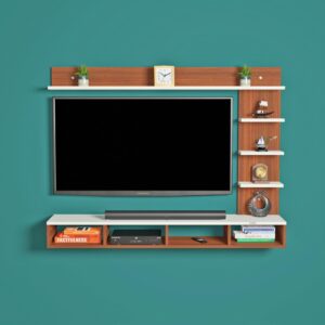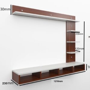 Material- Pre-laminated particle baord. Weight Capacity- 20 KG. Cable Management. Product Dimension- TV Cabinet- 121 x 23 x 70 CM cm Weight- 12.8 KG