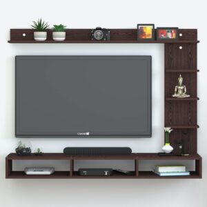 Wall Mount Engineered Wood TV Entertainment Unit is a sleek and modern solution for organizing your media space. Designed for contemporary living rooms, it includes a sturdy TV rack, set-top box stand, and complementary wall shelves that together create a clean and organized display. Crafted from high-quality engineered wood, this unit offers durability and long-lasting performance. The floating design not only saves space but also adds a touch of elegance to your wall. It is perfect for holding your television, remote controls, dΓ©cor items, and entertainment accessories, helping to keep your living area clutter-free and stylish. Ideal for modern homes, it blends functionality with visual appeal.