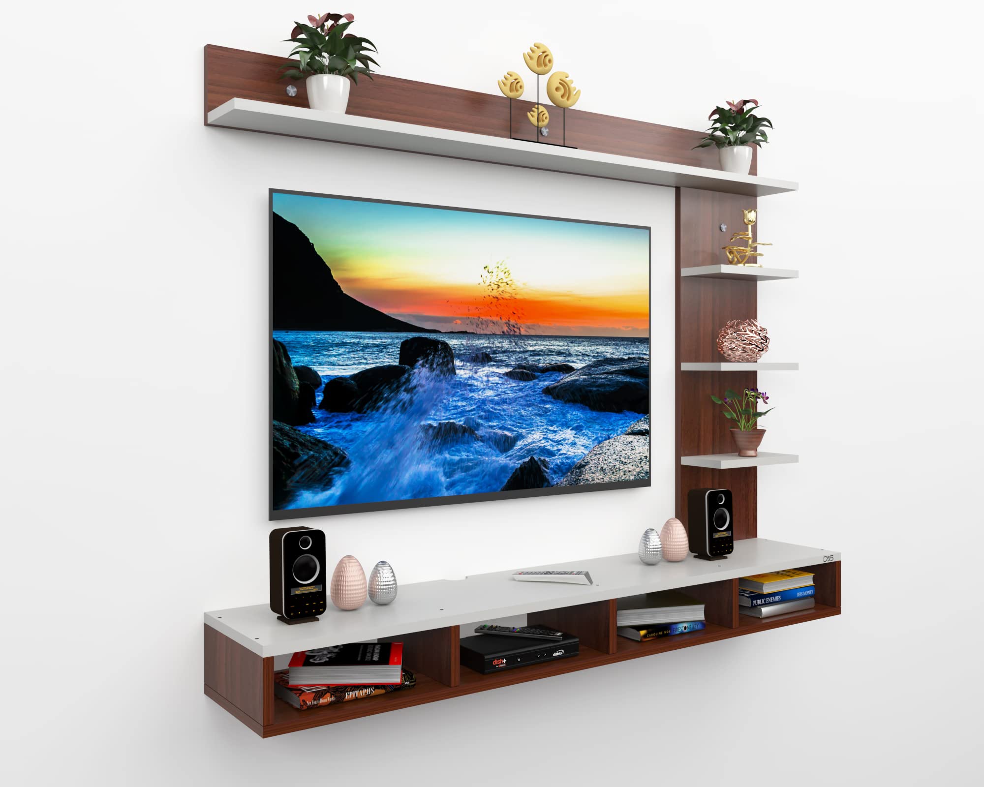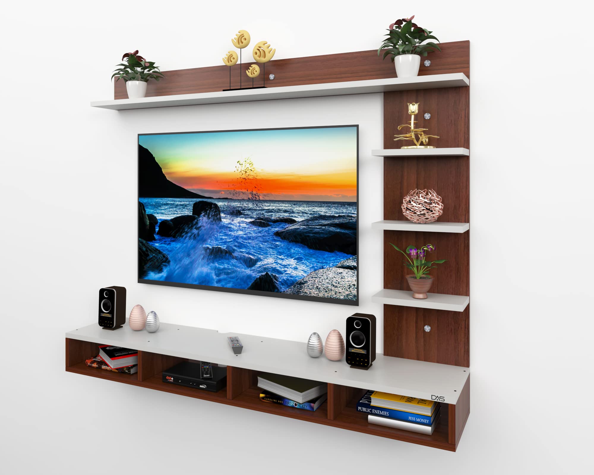 Color : Classic Walnut-Frosty White Size : Ideal for Upto 43″ TV