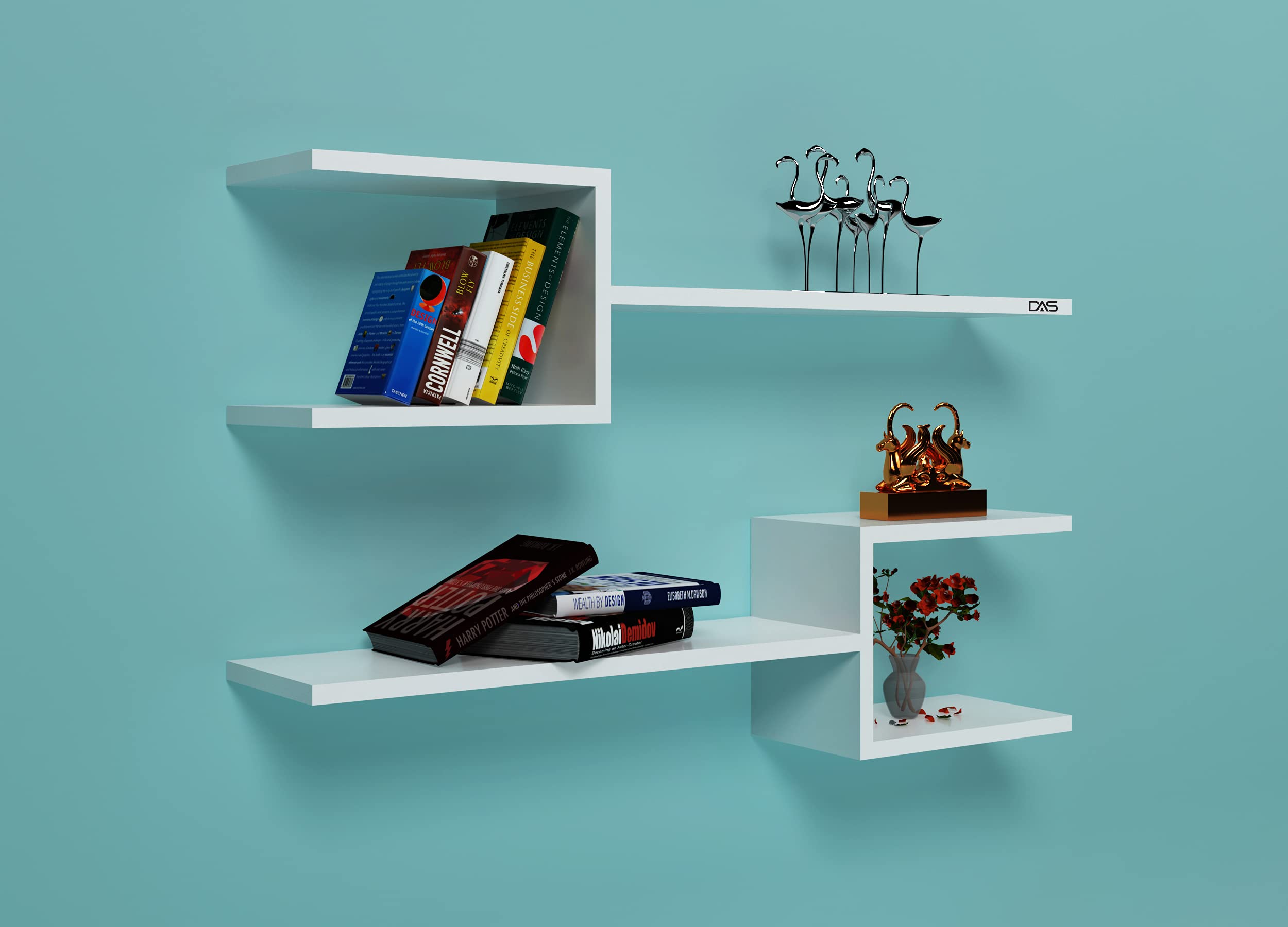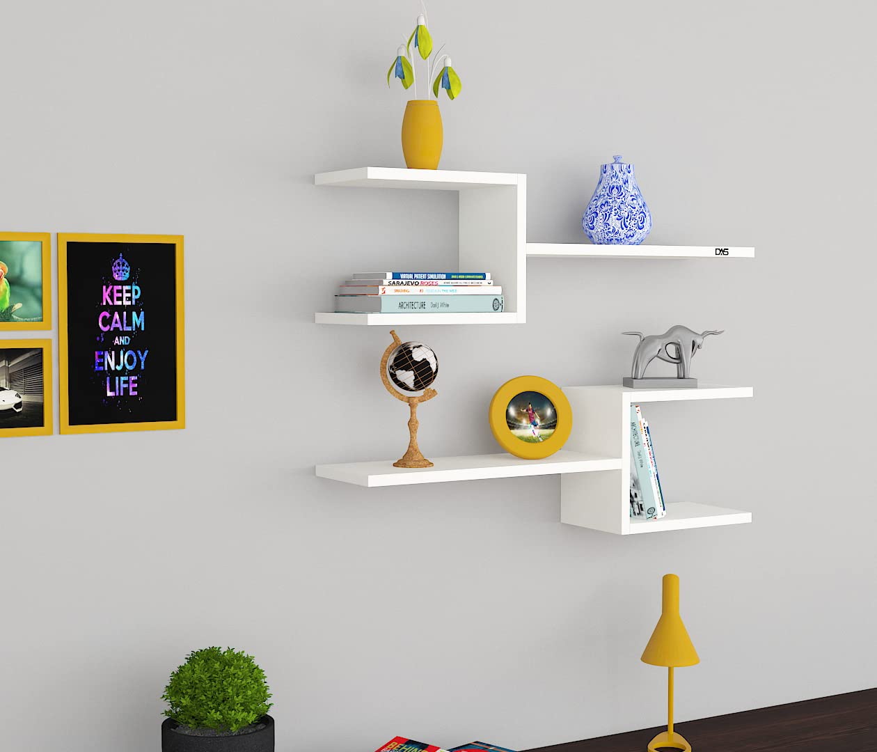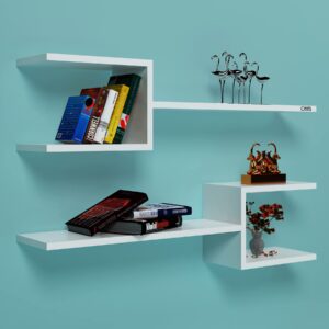 Aura Engineered Wood Wall Mount Multipurpose Living Room Wall Shelf/Display Rack Frosty White (6 Shelves)