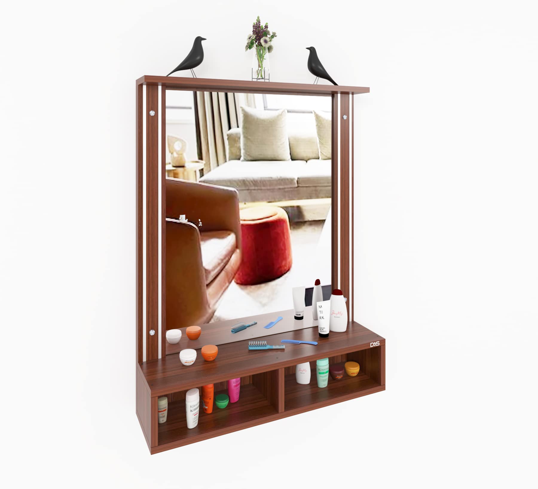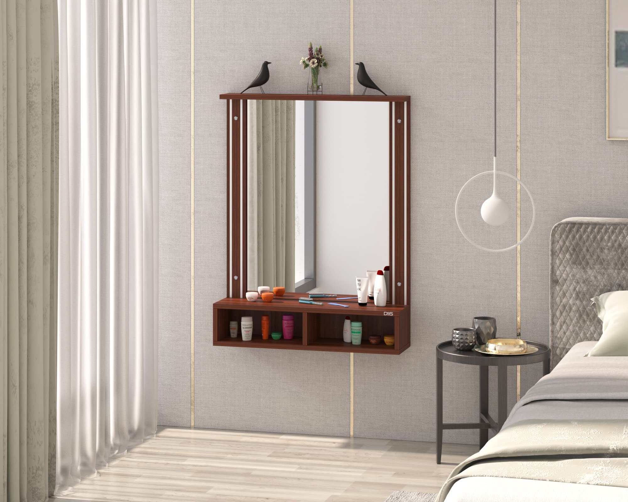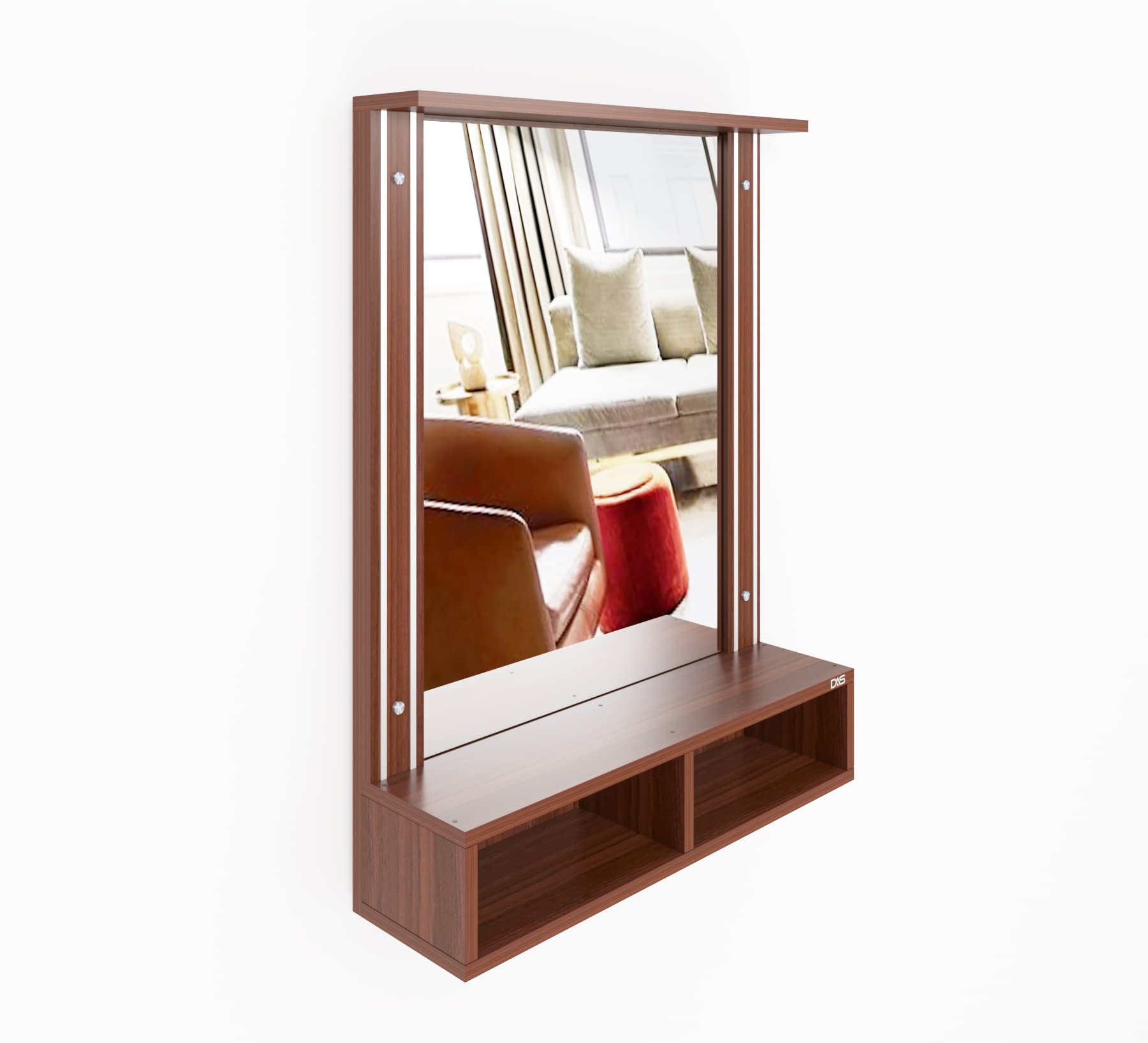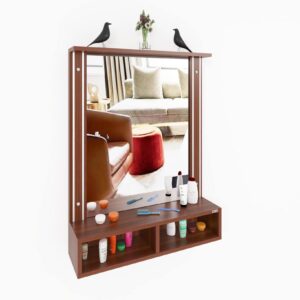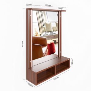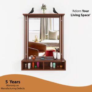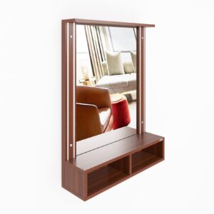 Bárbara Engineered Wood Wall Mount Dressing Table Vanity Mirror With Storage Shelves – Classic Walnut, Rectangular, Framed