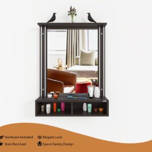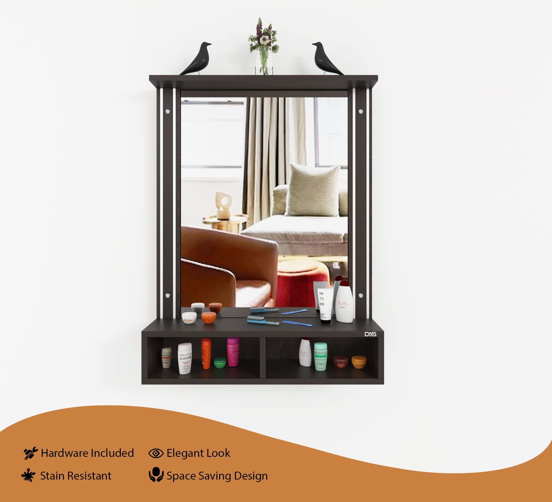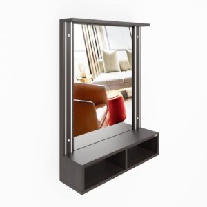 Material- Engineered Wood, Glass and Aluminum. Product Dimensions- Wooden Frame- 90 x 70 cm, Mirror- 74 x 54.5 cm, Storage Space- 70 x 15 x 12 cm, Weight- 15 kg.