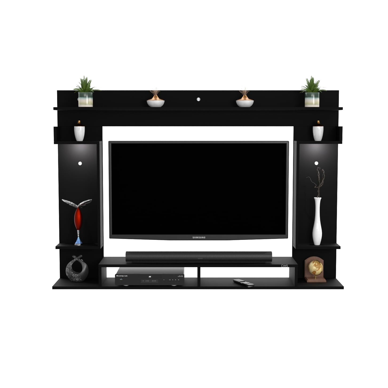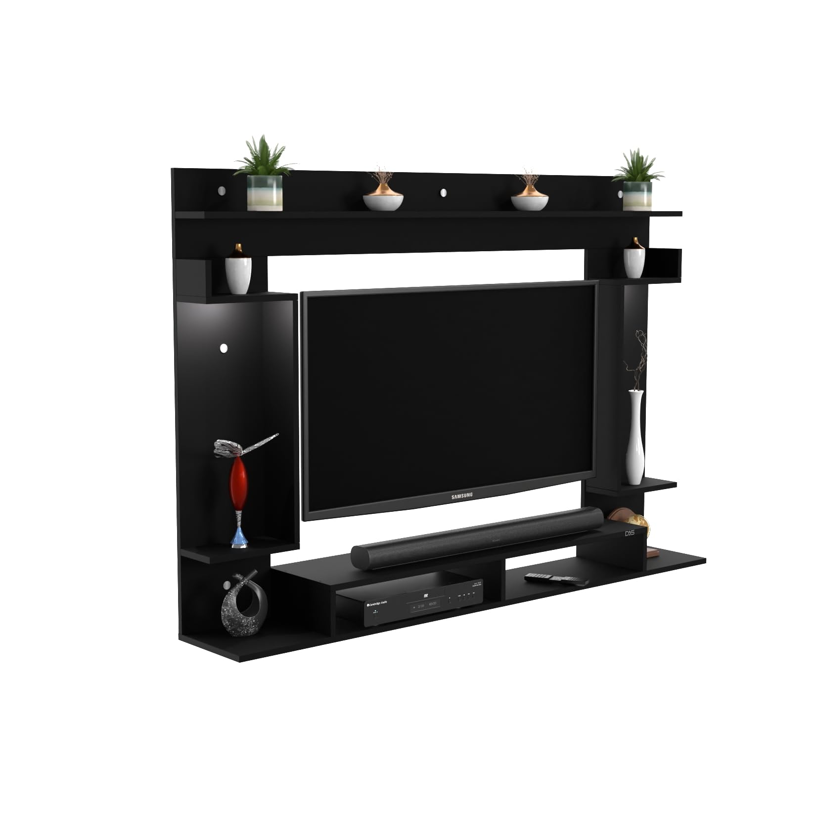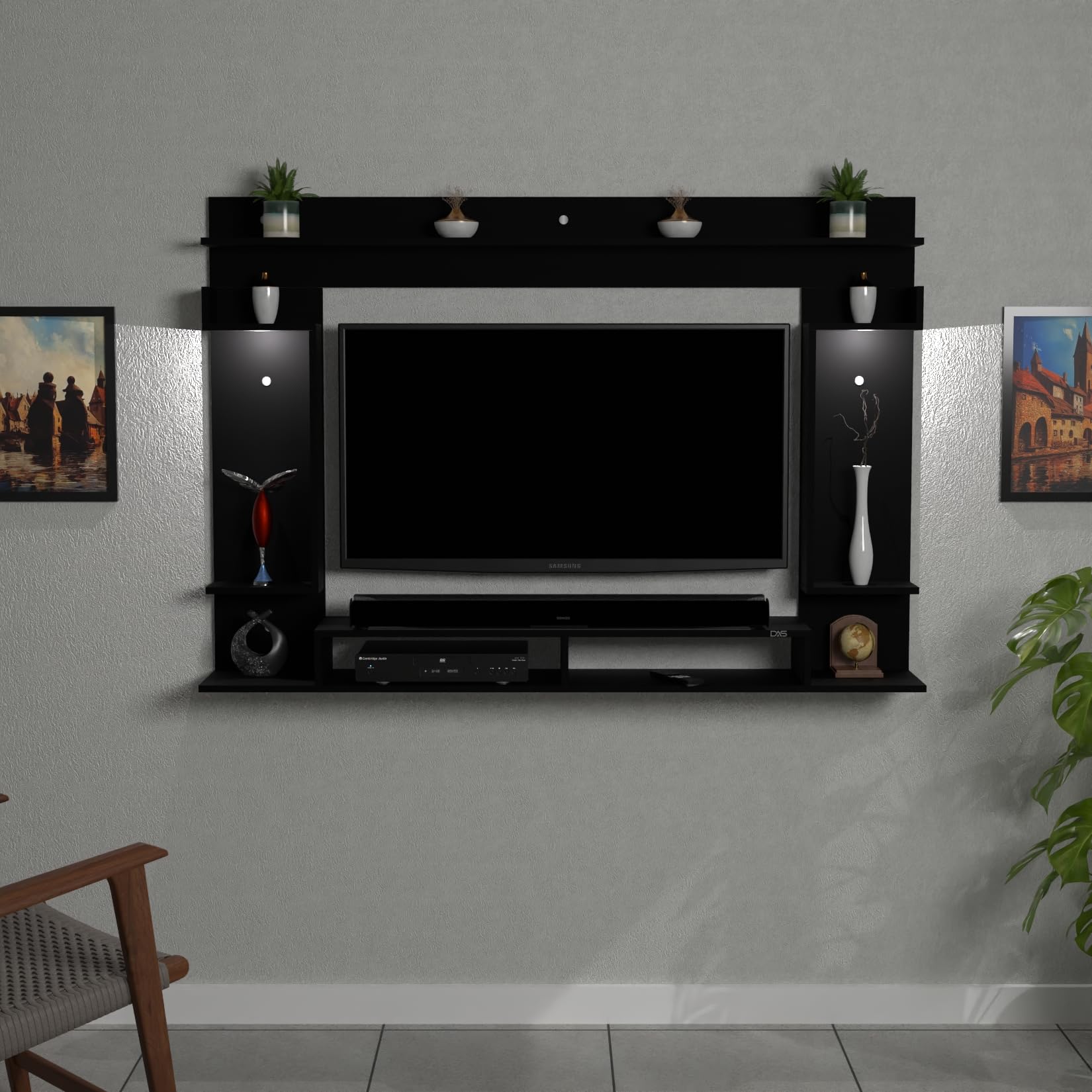 Cabiar LED 32 Light Installed Wall Mount Engineered Wood TV Entertainment Unit/Tv Rack Set to Box Stand with Wall Shelves for Living Room Black Finish (Ideal for up to 43″) Screen