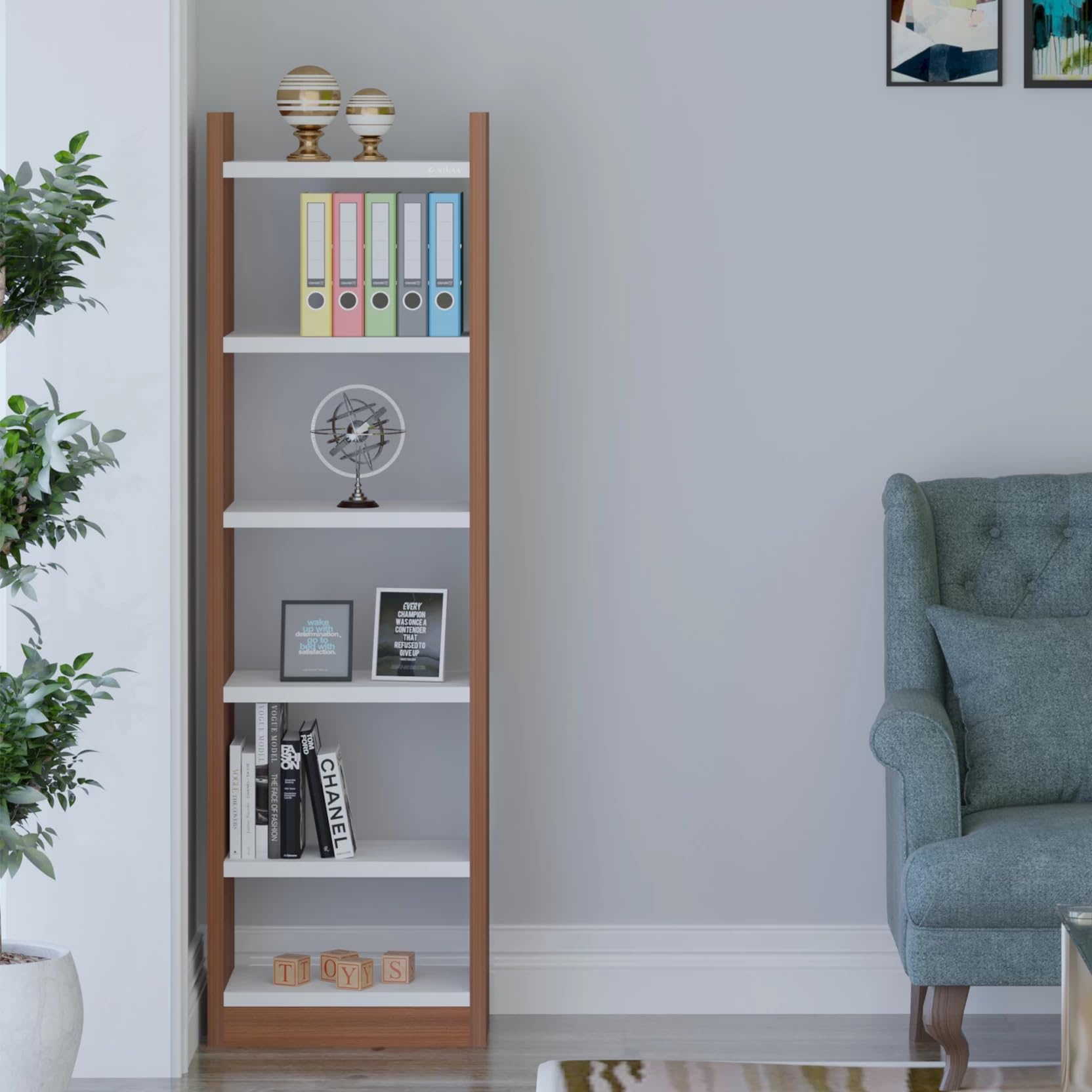 Colton Bookshelf Cabinet Book Rack Organizer with Shelves for Home Library Finish Color – Classic Walnut & White