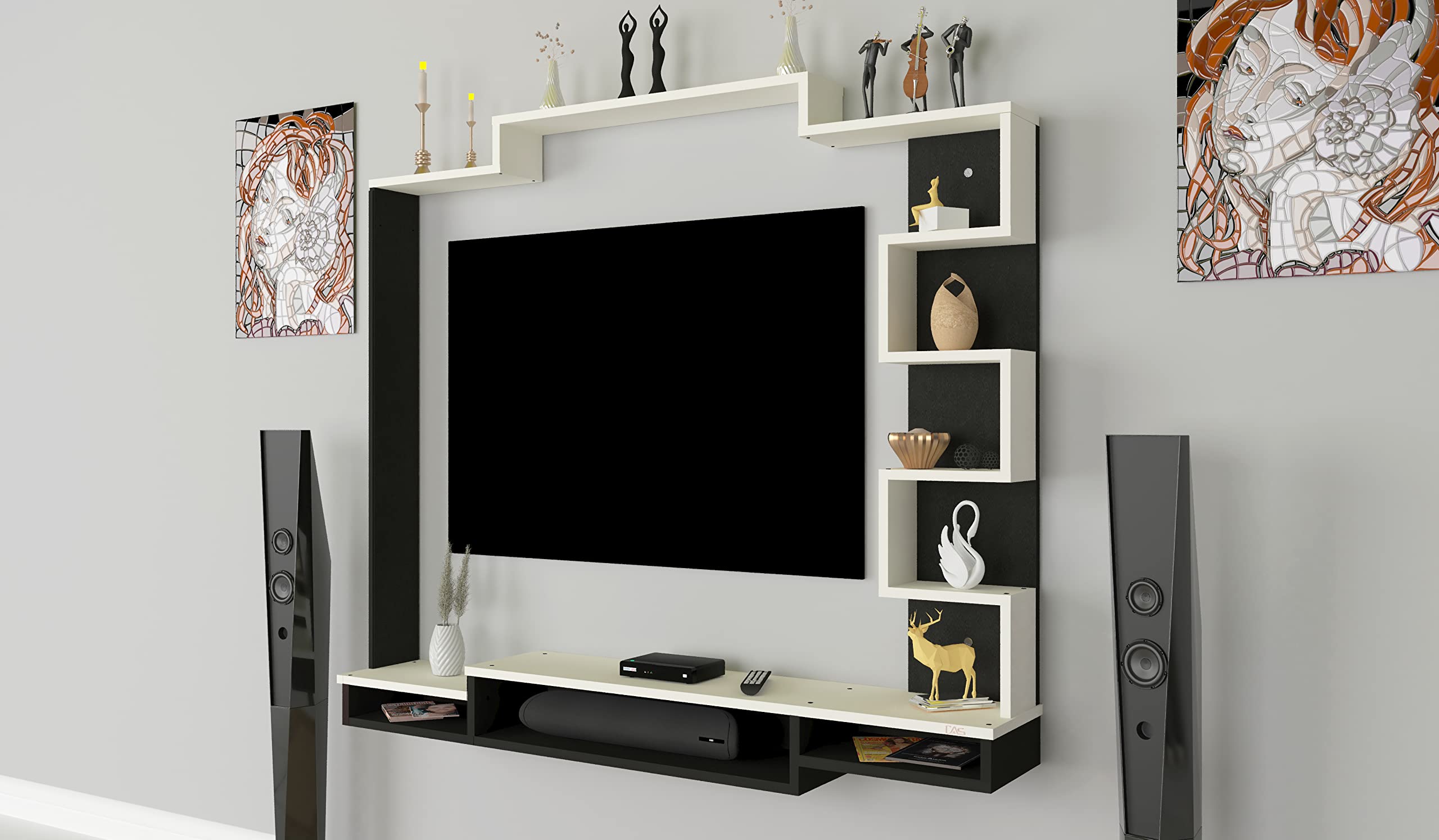 Color : Black-Frosty White Size : Ideal for Upto 50″ TV