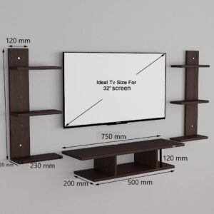 Dexter Pro Wall Mount TV Entertainment Unit/with Set Top Box Stand with Wall Shelf Display Rack for Living Room Flowery Wenge (Ideal for up to 32″) Screen