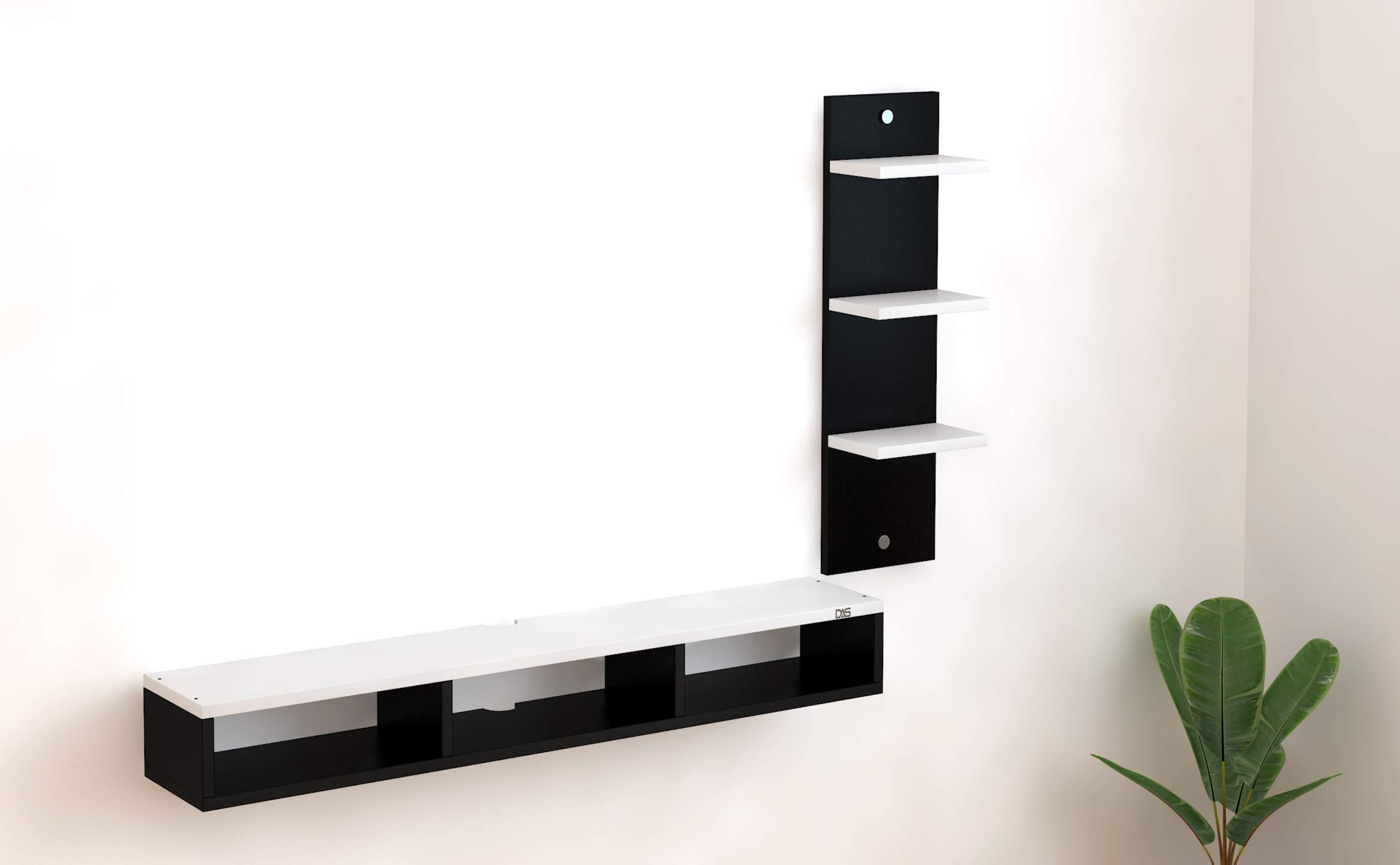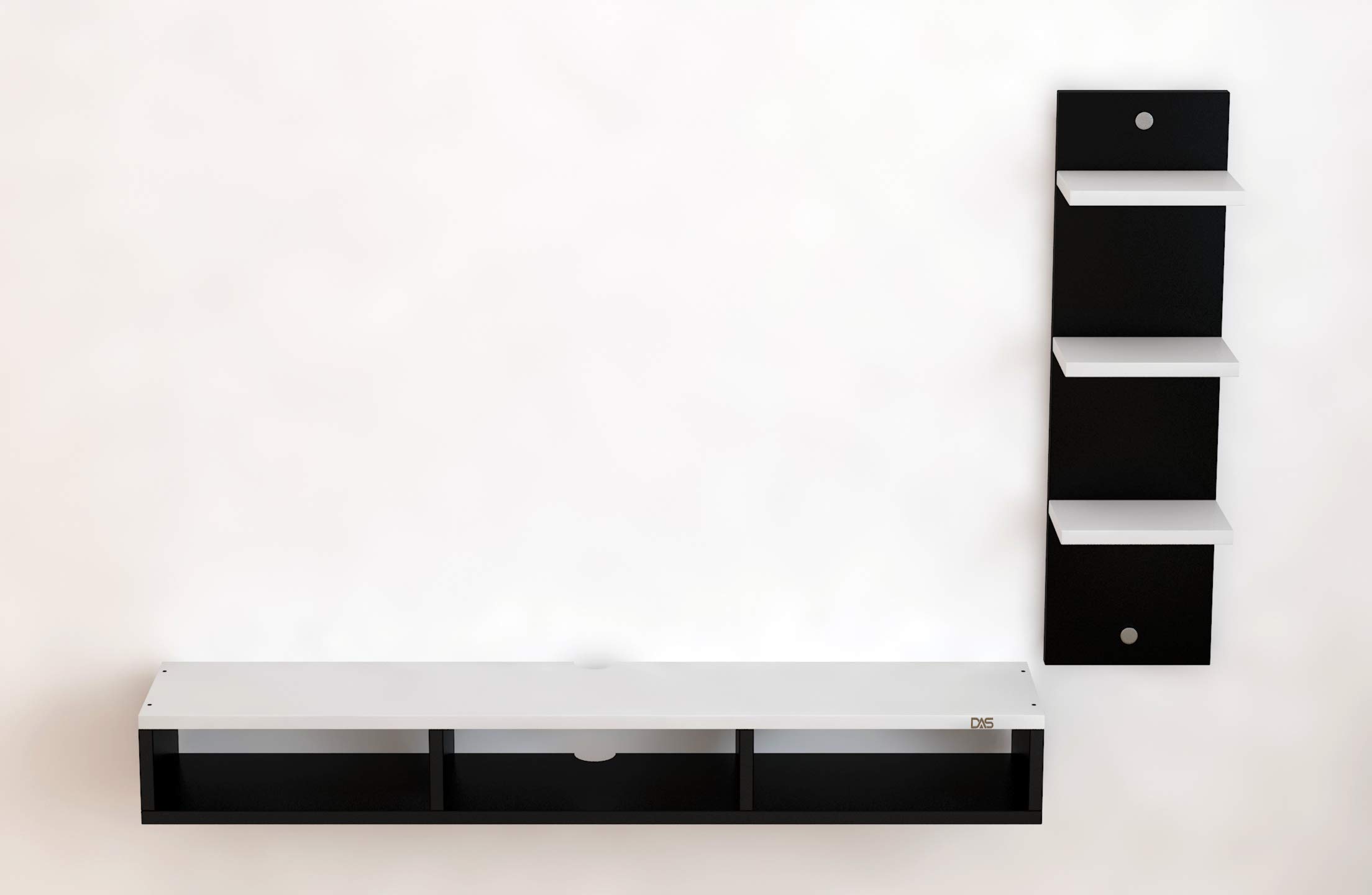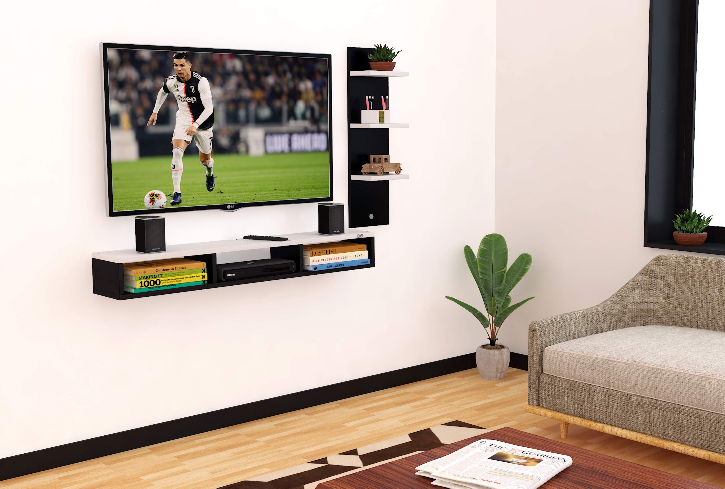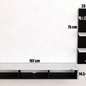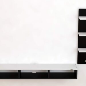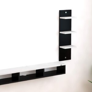 Engineered Wood Wall Mount TV Entertainment Unit with Set Top Box Stand and 3 Wall Shelves , Ideal for up to 48″ Screen- Bolivar (Black , White)