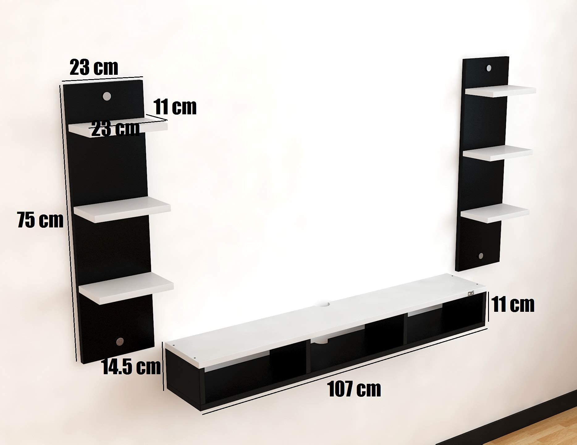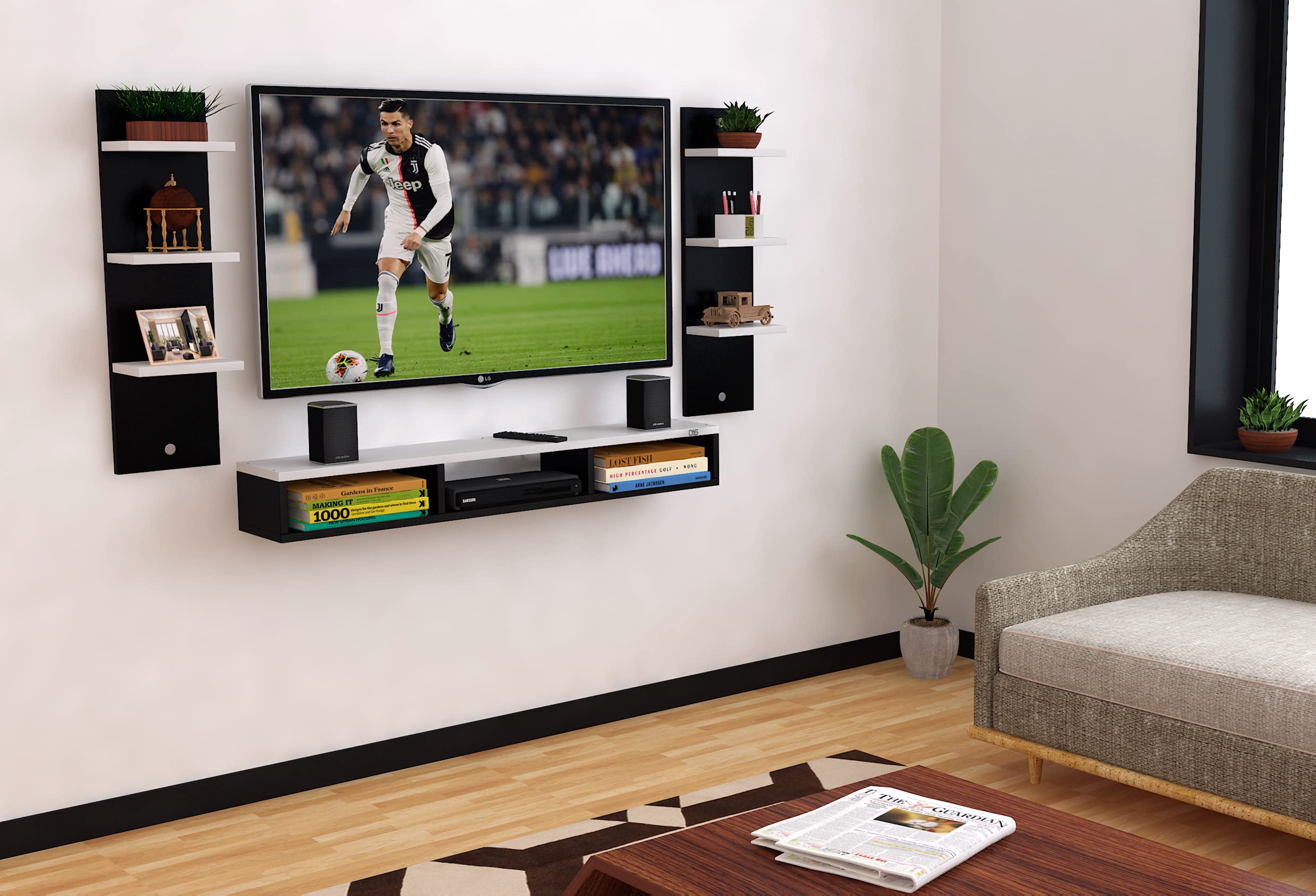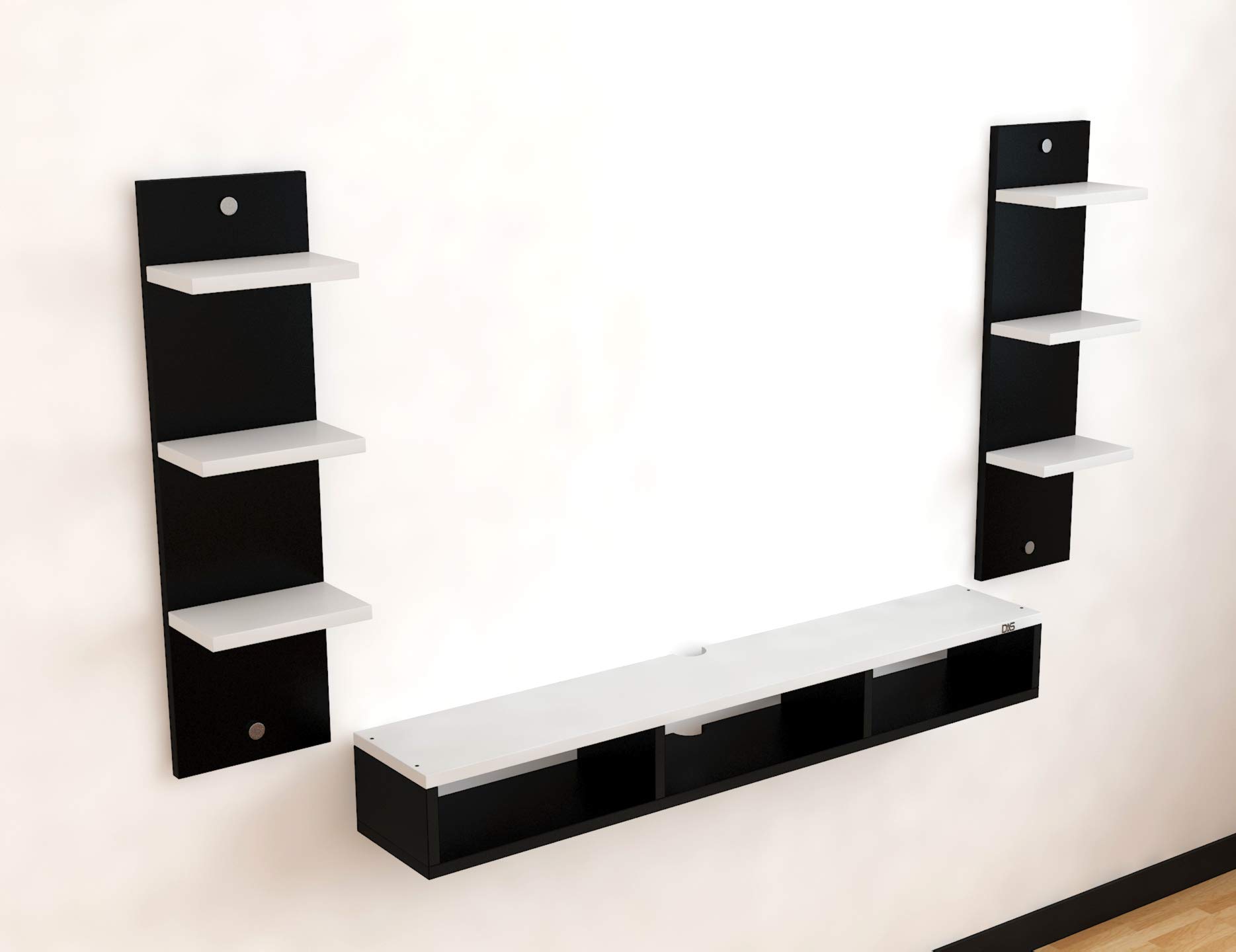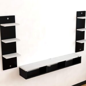 Engineered Wood Wall Mount TV Entertainment Unit with Set Top Box Stand and 6 Wall Shelves – Ideal for up to 48″ (Black and White )