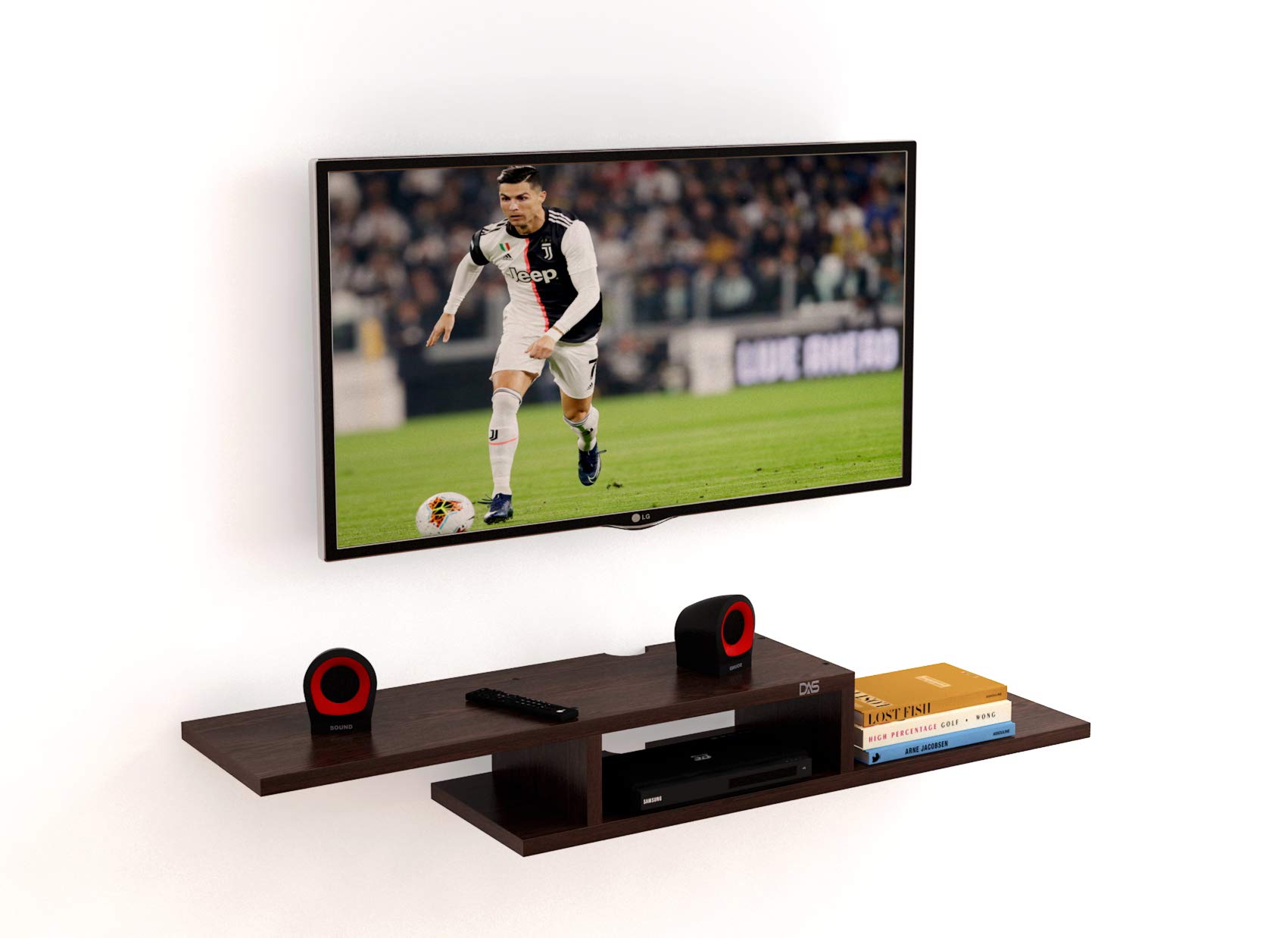 Bring home the perfect blend of style and functionality with the DAS Wall Mount TV Entertainment Unit – Erek in elegant Wenge finish. Designed to enhance the look of your living room, this modern unit is ideal for TVs up to 42 inches, providing a sleek and organized setup. The wall-mounted design not only saves floor space but also adds a contemporary touch to your home dΓ©cor, making it an excellent choice for compact as well as spacious rooms. Crafted from high-quality engineered wood, this entertainment unit ensures durability and long-lasting performance. It features a dedicated set top box stand, offering a neat and practical solution for arranging your media devices. The smooth finish and clean lines give it a premium appearance, while the sturdy construction ensures your TV and accessories remain safe and well-supported. With its functional design, the Erek TV unit helps keep your living area clutter-free by organizing wires, devices, and essentials in one place. The wenge shade blends effortlessly with different furniture styles, complementing both modern and classic interiors. Upgrade your home entertainment experience with this stylish and space-saving unitβ€”perfect for family rooms, bedrooms, or even office spaces.