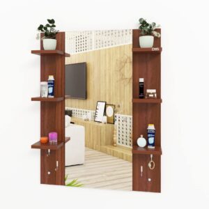 Material- Engineered Wood, Glass and Stainless Steel. Product Dimensions- Wooden Frame- 90 x 70 cm, Mirror- 89.5 x 39 cm. Weight- 13.5 kg.