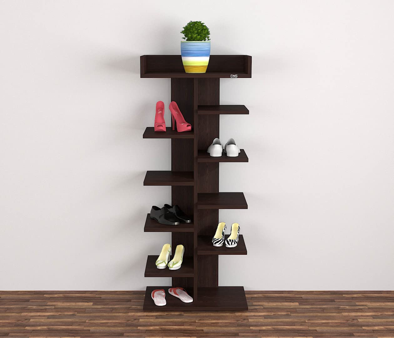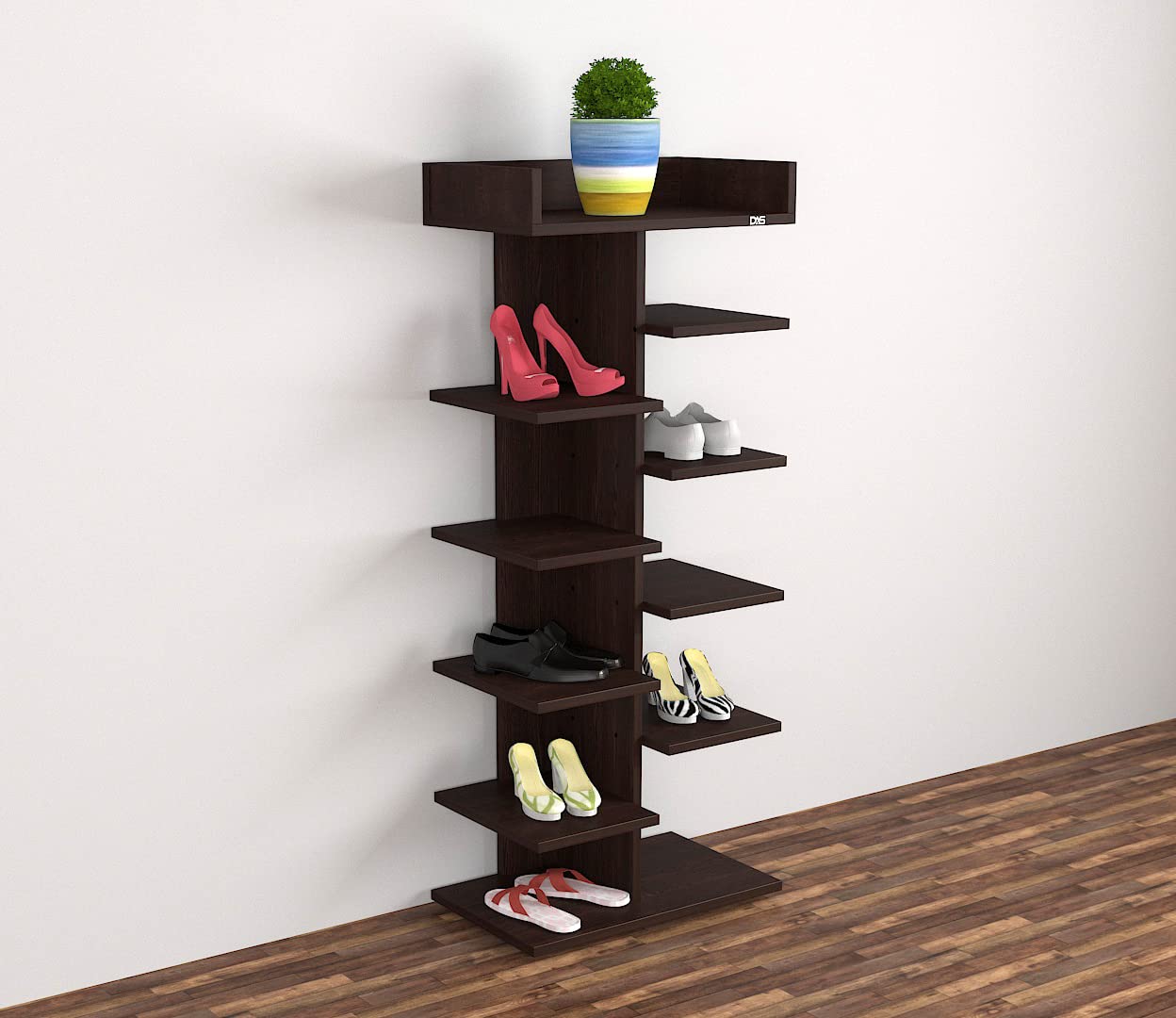 Felix Engineered Wood Shoe Rack Organizer for 8 Pairs of Shoes/Sleepers/Sandals- Flowery Wenge Finish
