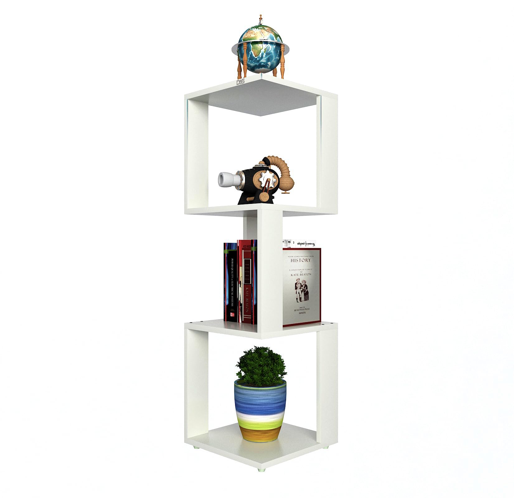 Material- Engineered Wood Color- White Application- Living Room Product Type- Corner Shelf Number Of Shelves- 4