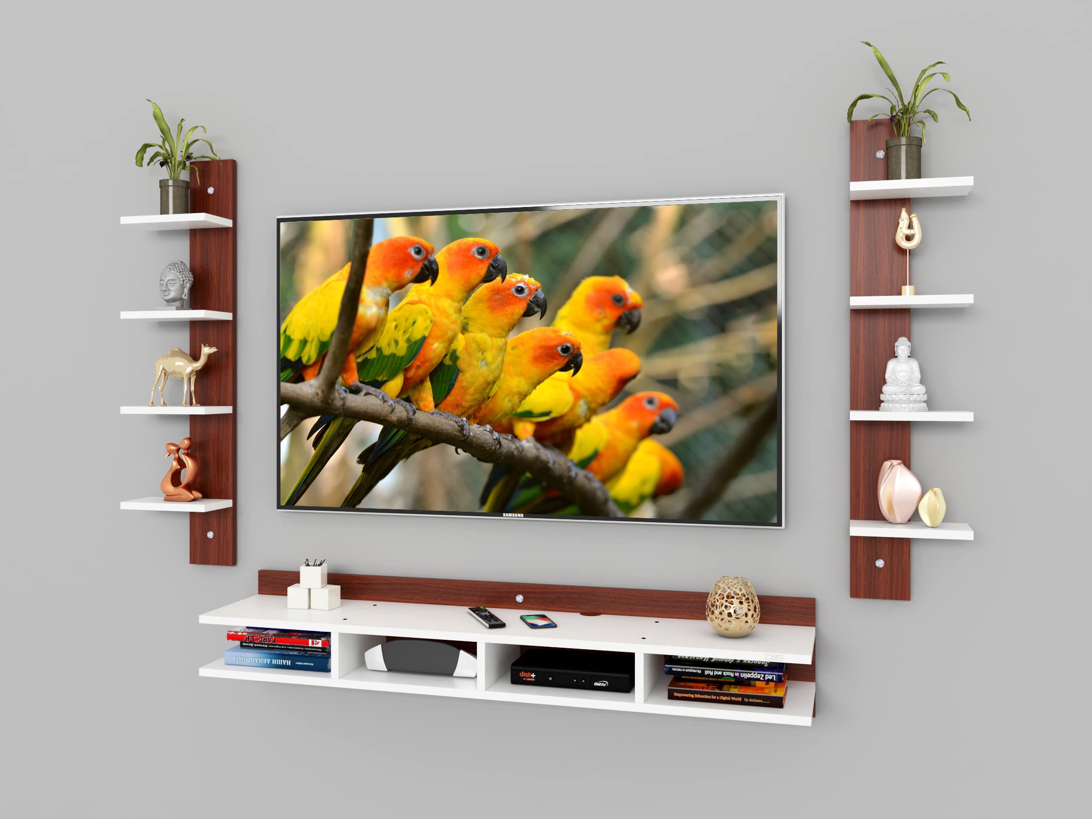 Material- Engineered Wood, Color- Classic Walnut & Frosty White, Dimension- Length- 132 cm, Breadth- 25 cm, Height- 125 cm, Weight- 18 kg.