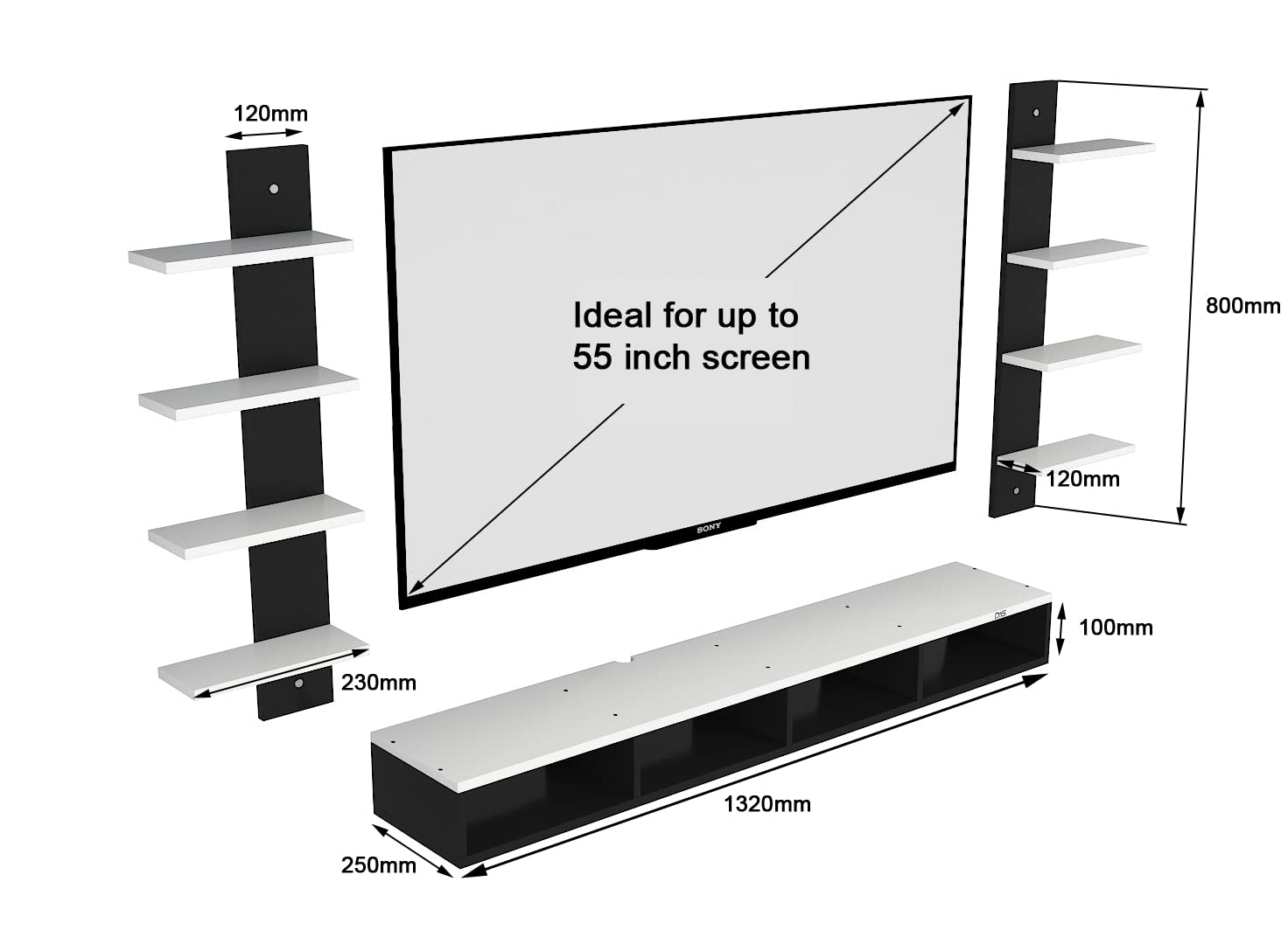 Color : Black-Frosty White Size : Ideal for Upto 55″ TV