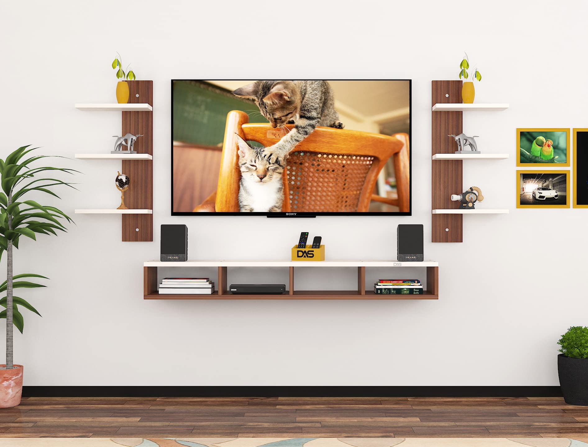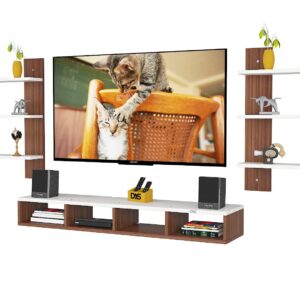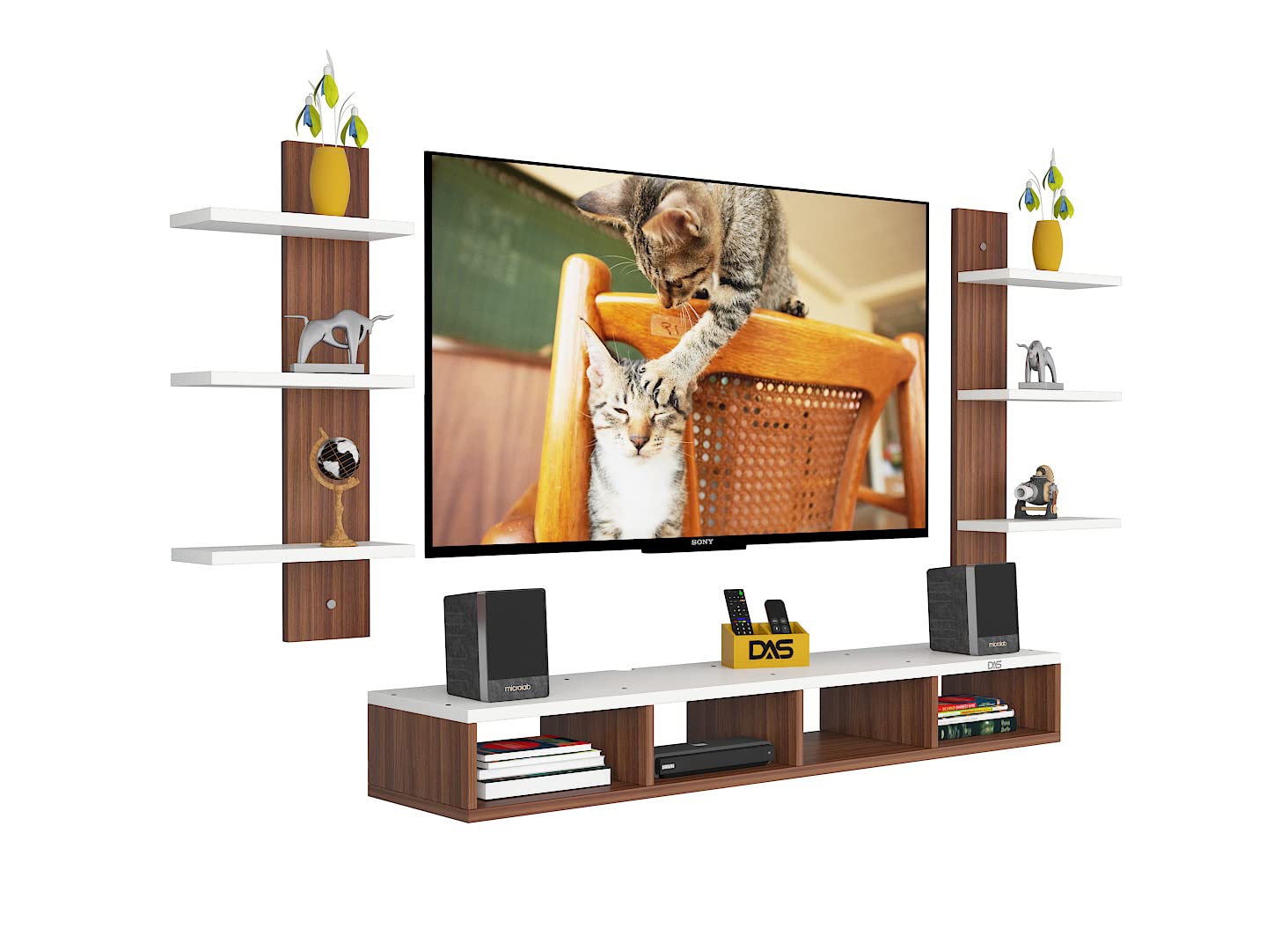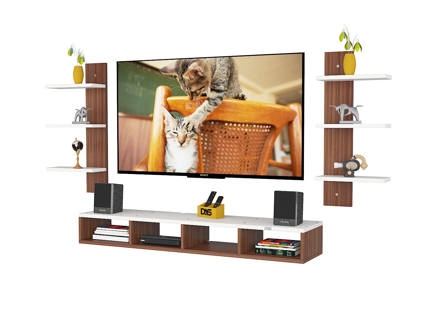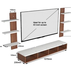 Harries TV Entertainment Unit Stand Set TOP Box Stand with Shelves and Display Rack Classic Walnut & Frosty White Medium- Ideal for UP to 43 INCH Screen