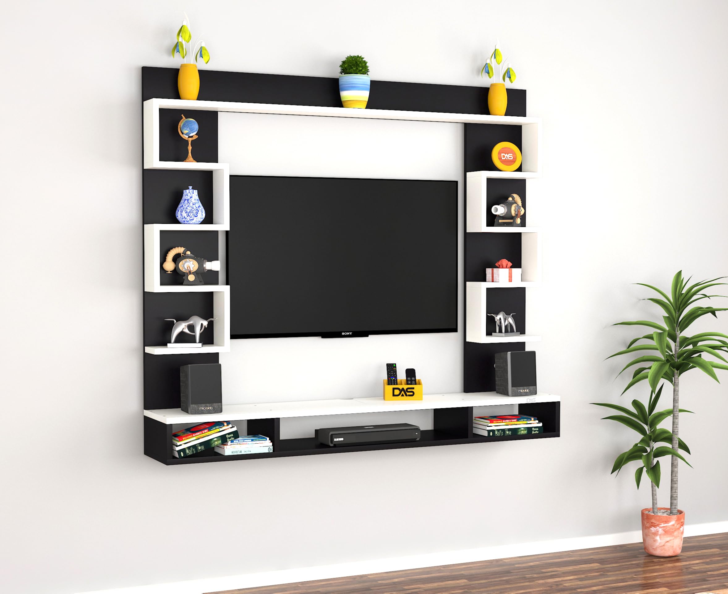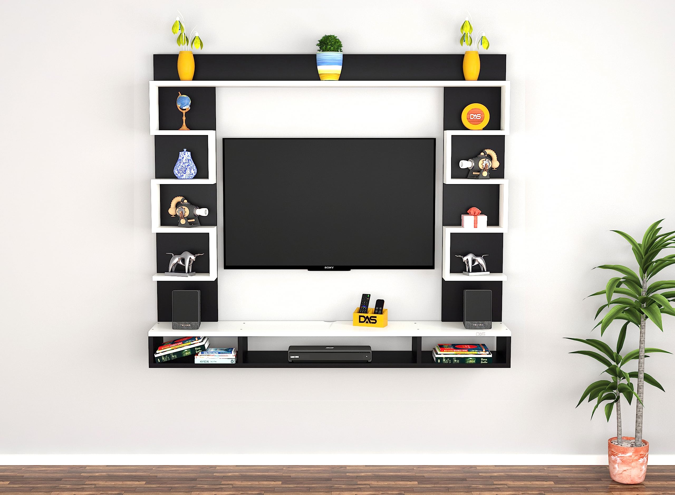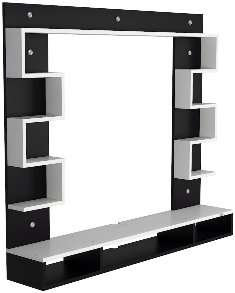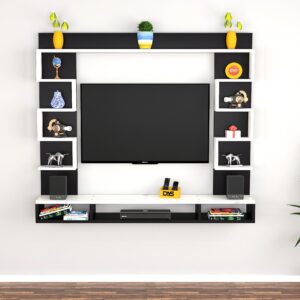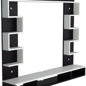 Heller Engineered Wood Wall Mount TV Entertainment Unit/Tv Rack Set to Box Stand with Wall Shelves for Living Room Black & Frosty White (Ideal for up to 43″) Screen