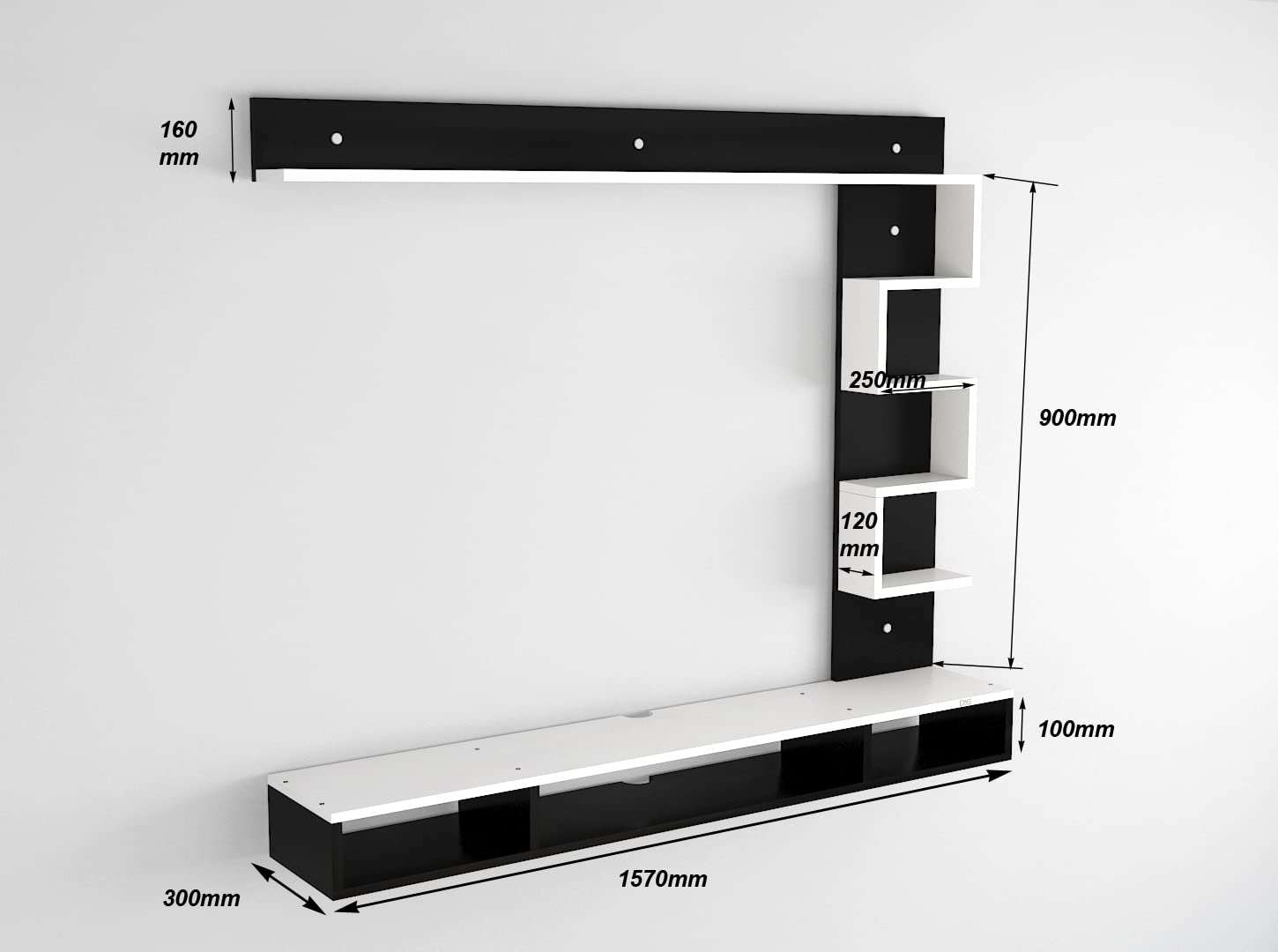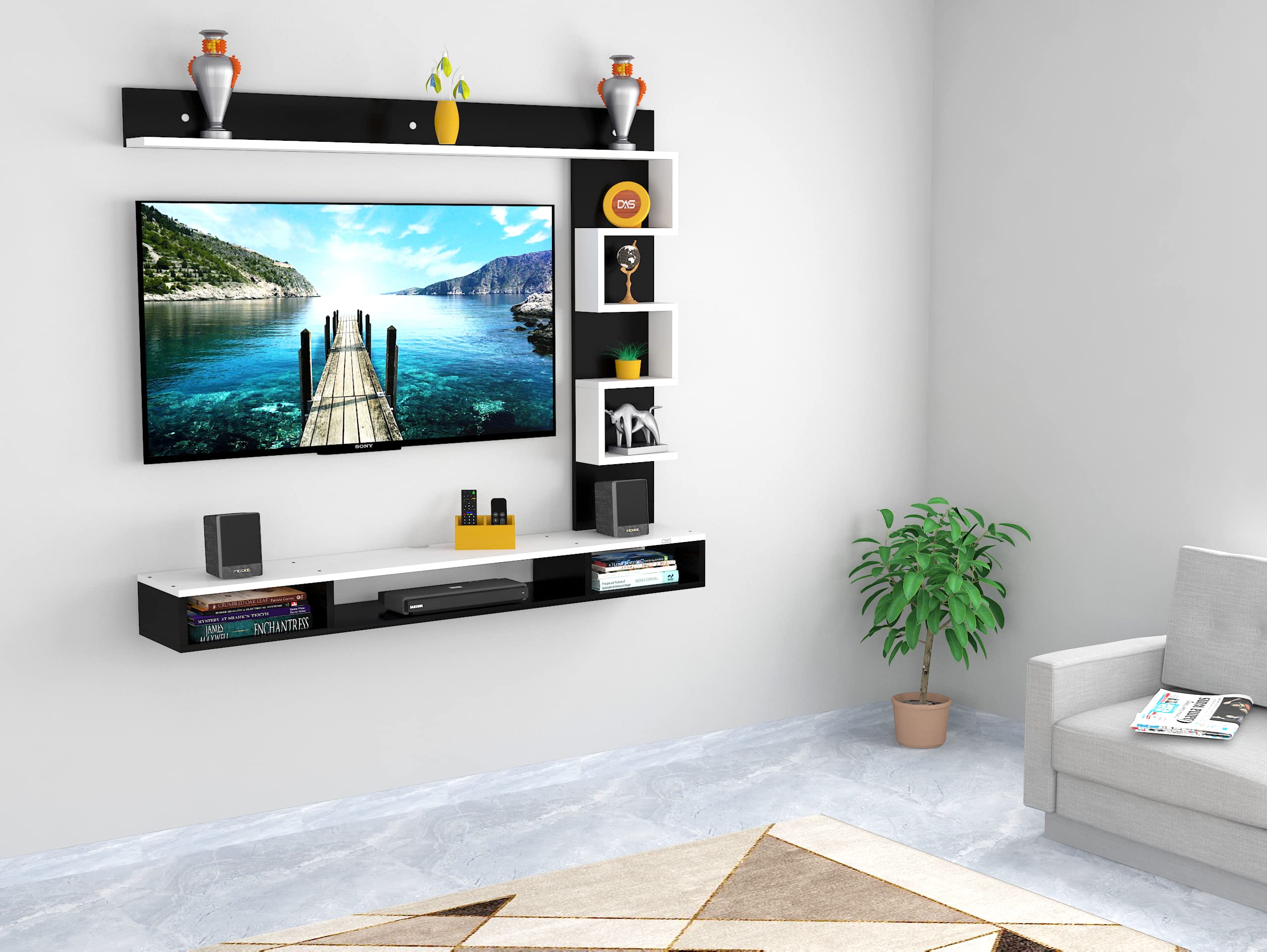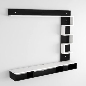 Hubert Engineered Wood TV Entertainment Unit Stand Set TOP Box Stand with Shelves and Display Rack Black & Frosty White- Ideal for UP to 55″ INCH Screen