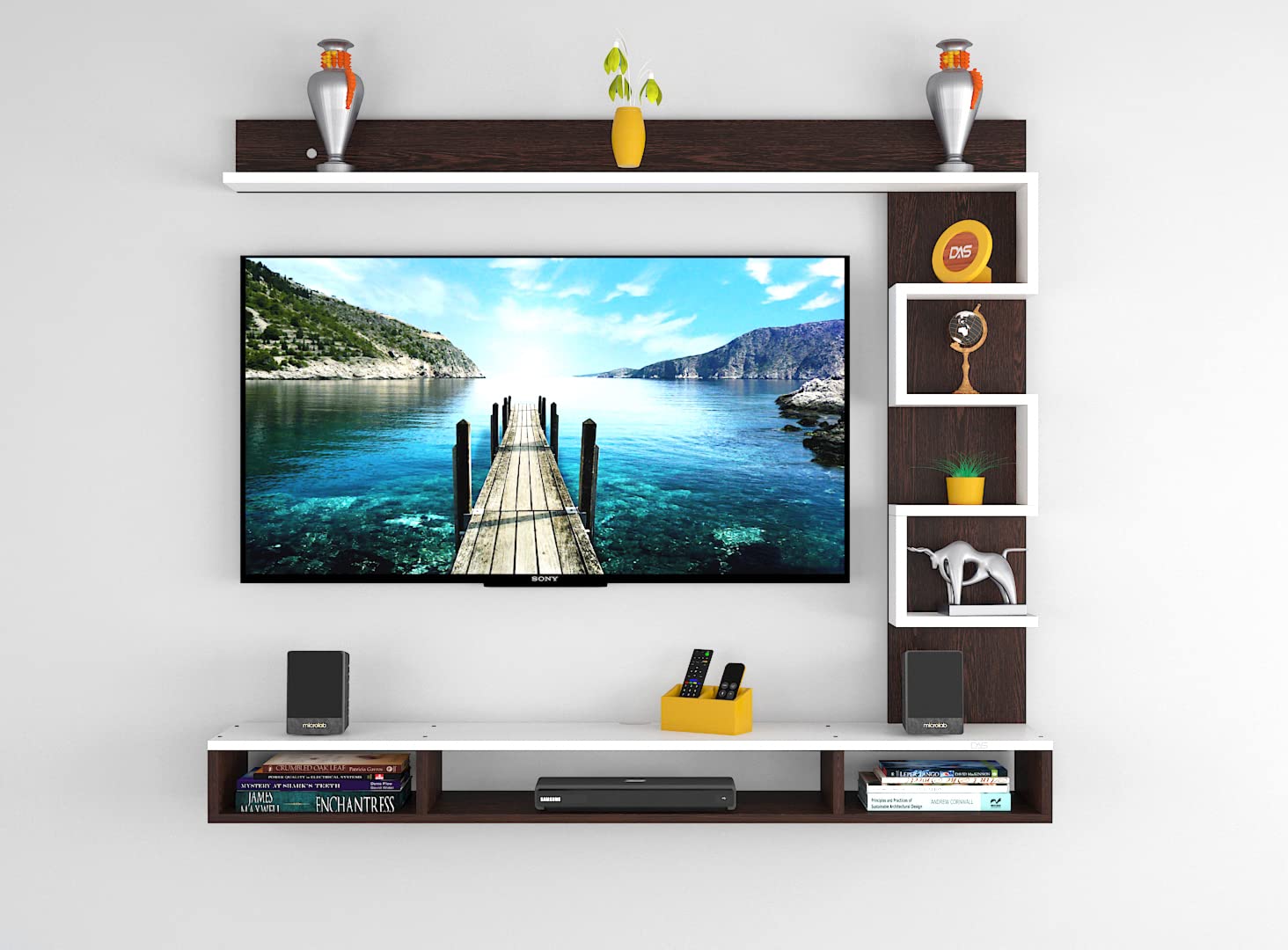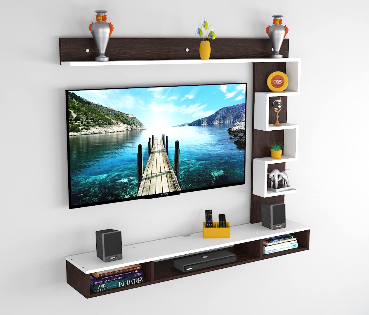 Color : Flowery Wenge-Frosty White Size : Ideal for Upto 43″ TV