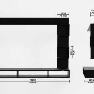 Material- Pre-laminated particle baord. Weight Capacity- 20 KG. Cable Management. Product Dimension- TV Cabinet- 121 x 23 x 72 CM cm Weight- 12.8 KG