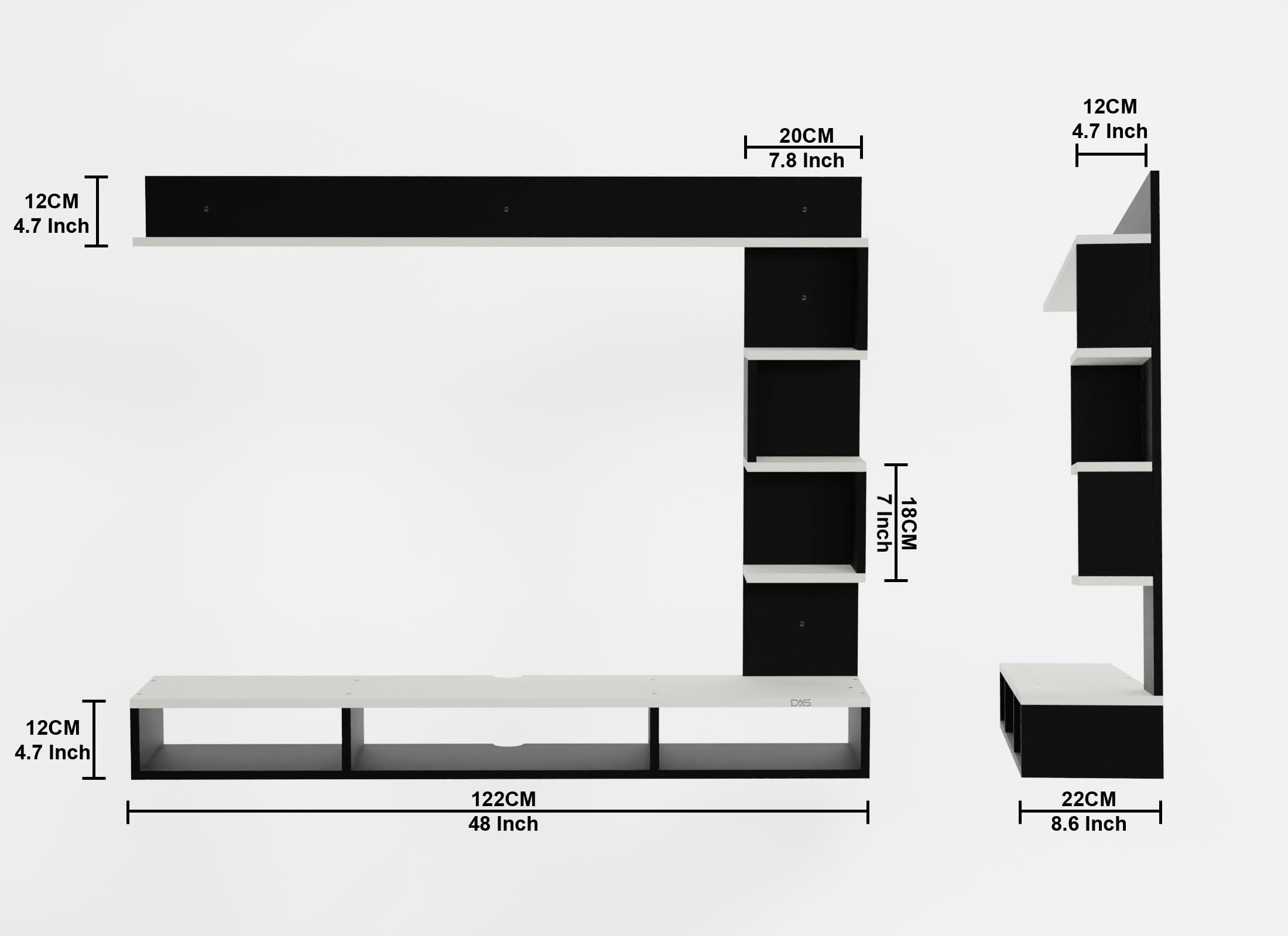 Material- Pre-laminated particle baord. Weight Capacity- 20 KG. Cable Management. Product Dimension- TV Cabinet- 121 x 23 x 72 CM cm Weight- 12.8 KG