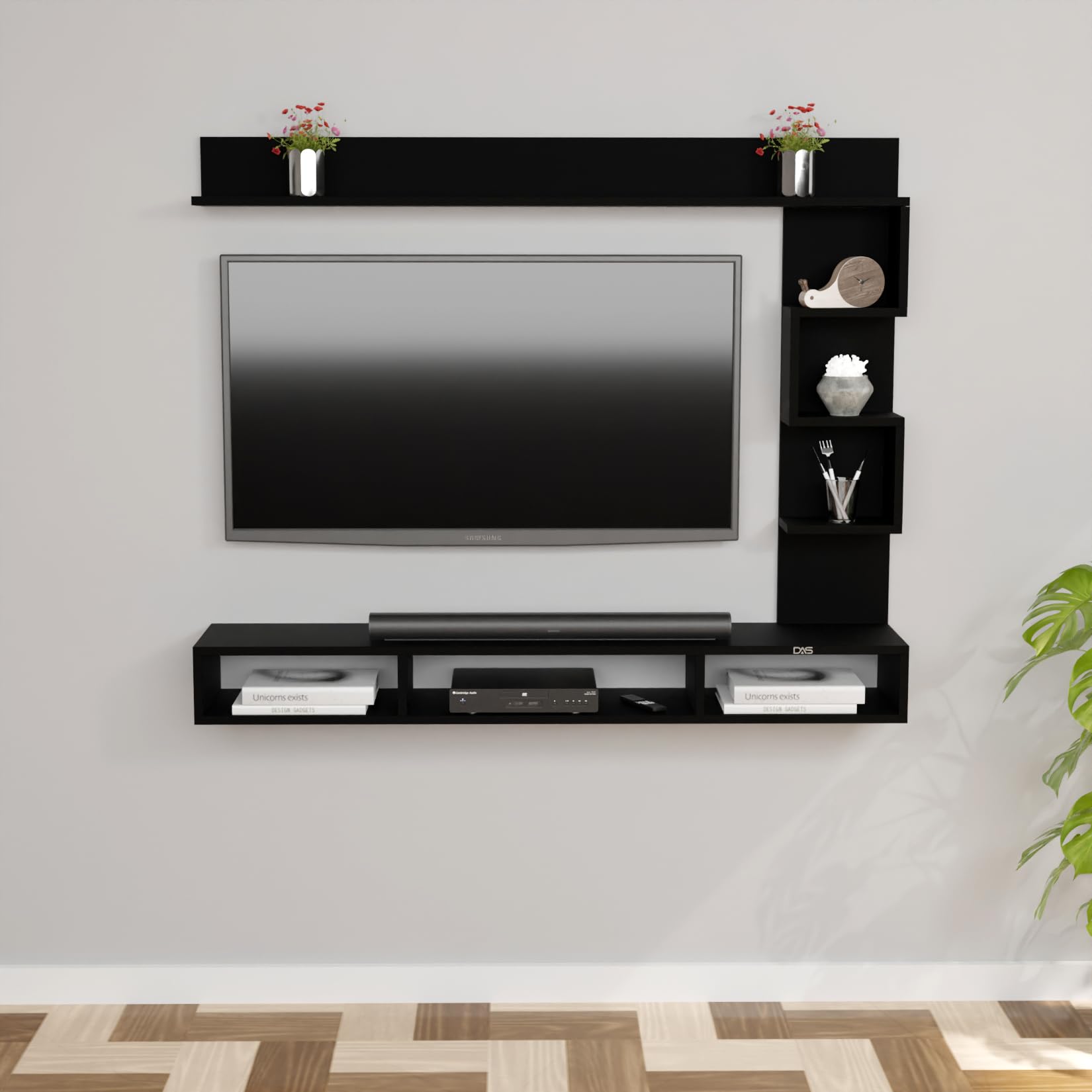 Hubert Pro Wall Mount Engineered Wood TV Entertainment Unit/Tv Rack Set to Box Stand with Wall Shelves for Living Room Black Finish (Ideal for up to 43″) Screen