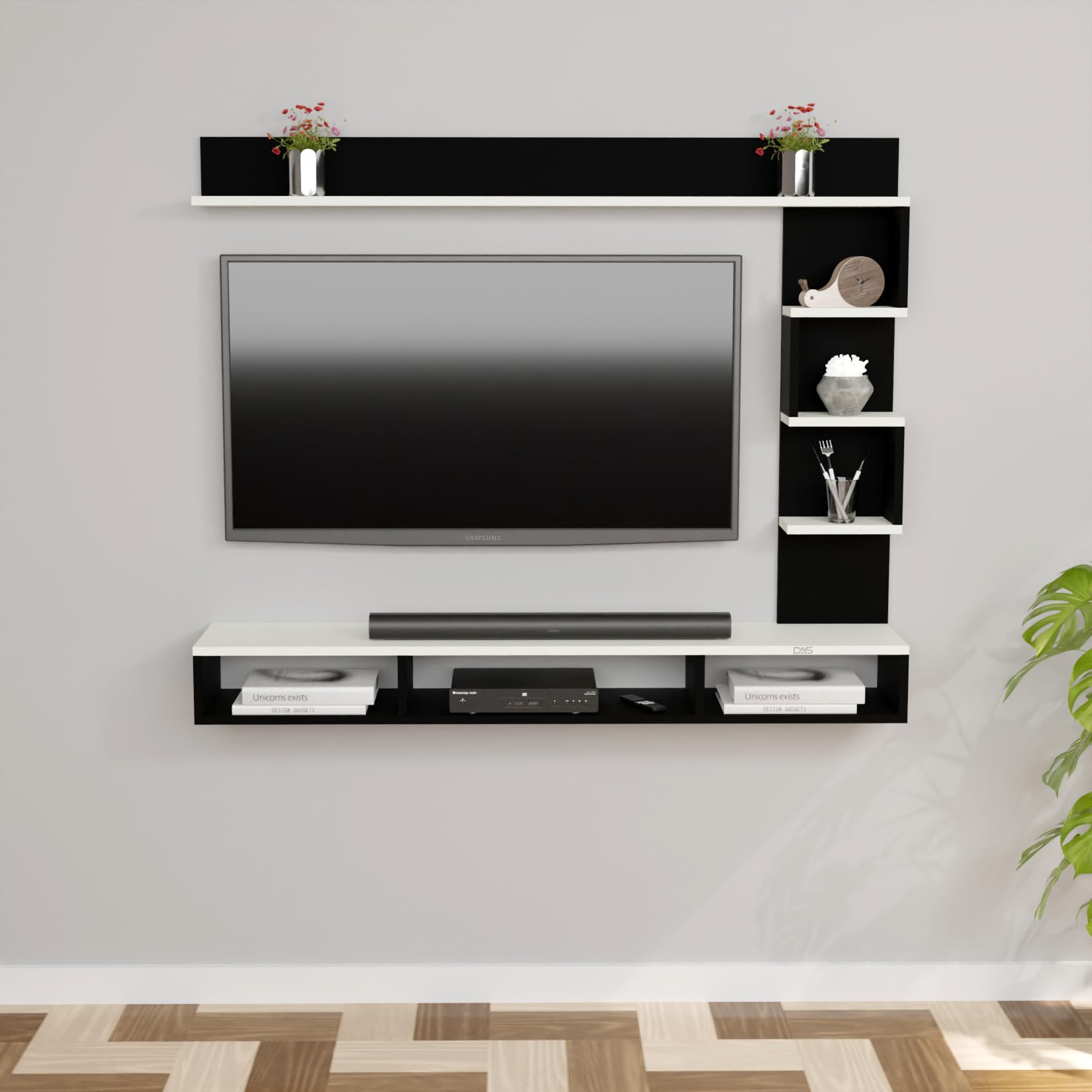 Hubert Pro Wall Mount Engineered Wood TV Entertainment Unit/Tv Rack Set to Box Stand with Wall Shelves for Living Room Black & Frosty White Finish (Ideal for up to 43″) Screen