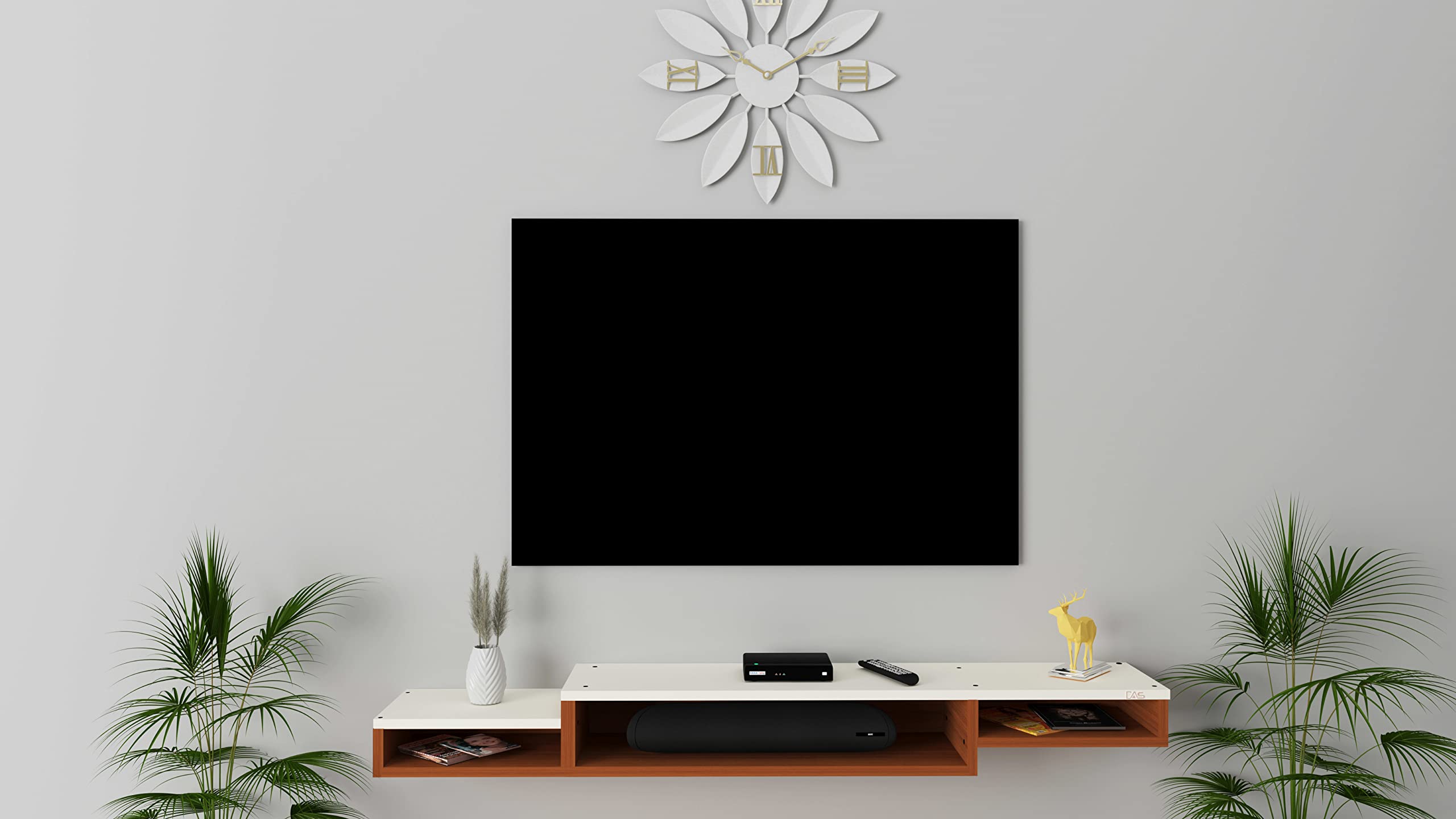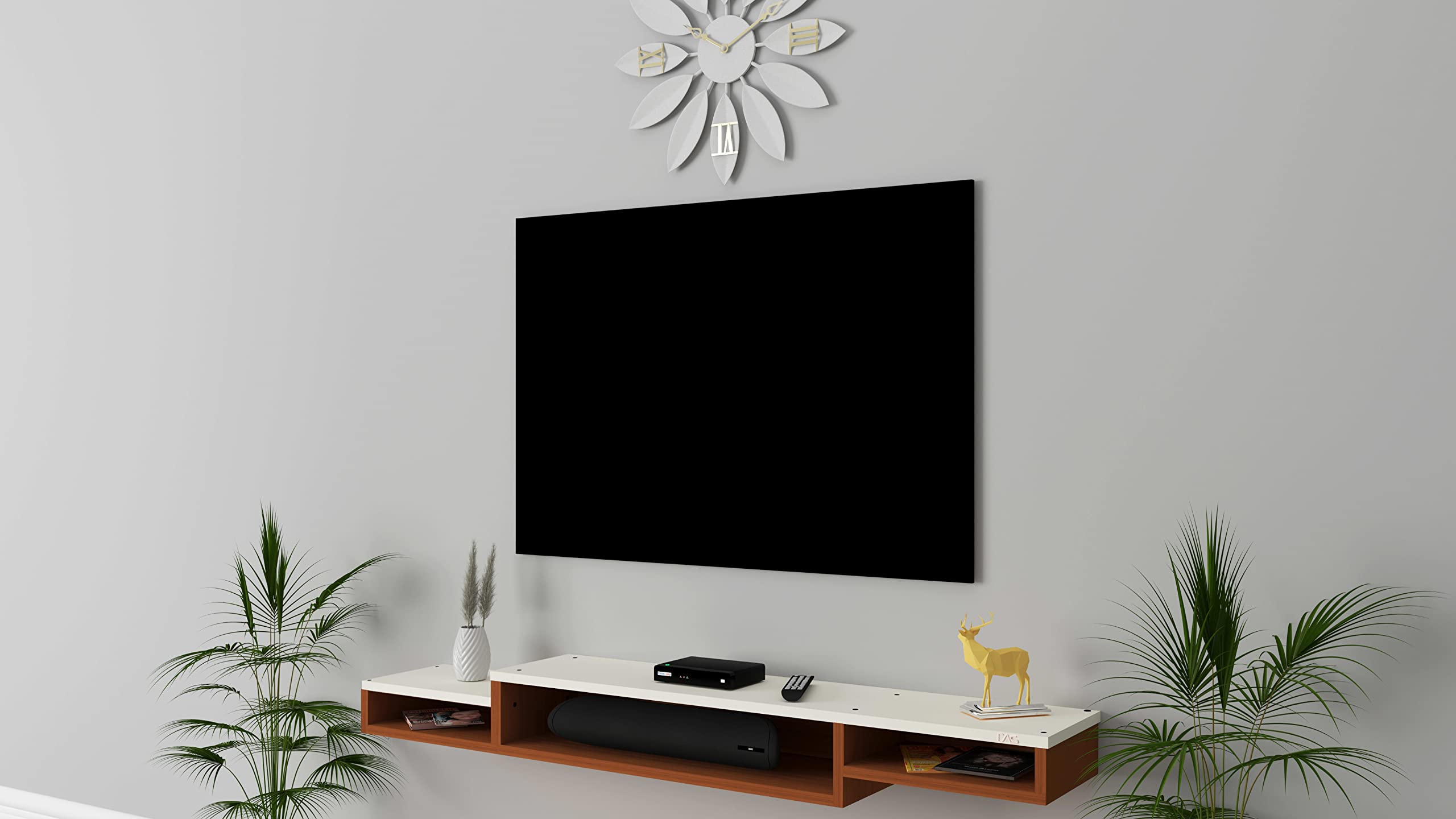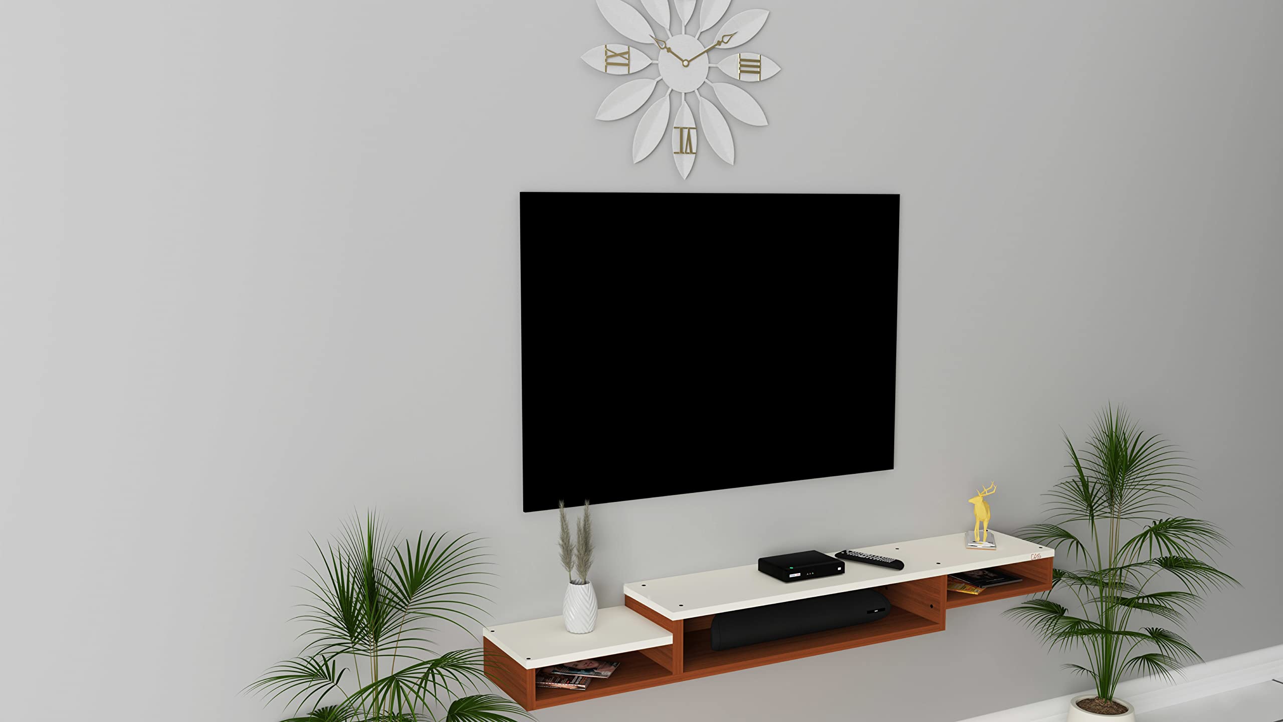 Color : Classic Walnut-Frosty White Size : Ideal for Upto 65″ TV