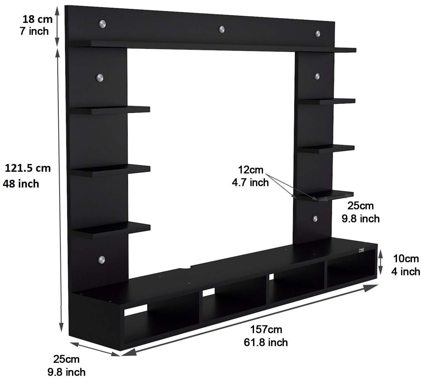 Material- 17mm Pre-laminated particle baord. Weight Capacity- 25 KG. Cable Management. Product Dimension- TV Cabinet- 157 x 25 x 13.4 CM, Wall Shelf- 25 x 12 CM, Shelf supporting Unit- 90 x 25 CM, Pop Up Shelf- 157 x 18 CM & 157 x 12 CM. Thickness Of Board- 17 MM, Weight- 21 KG