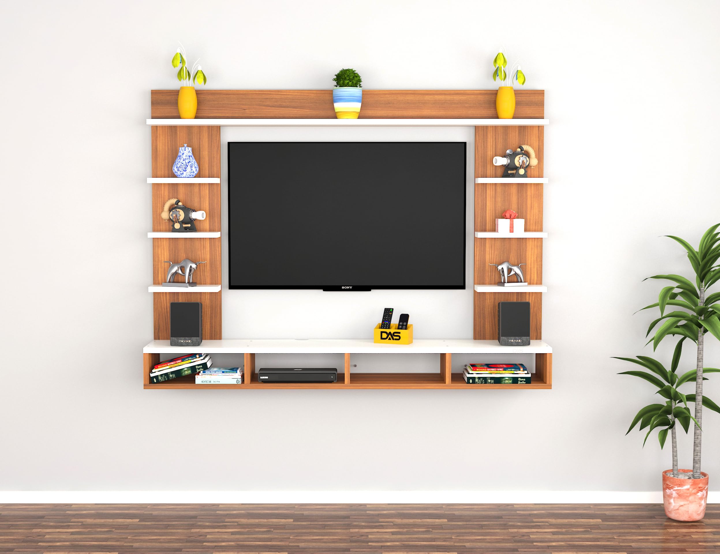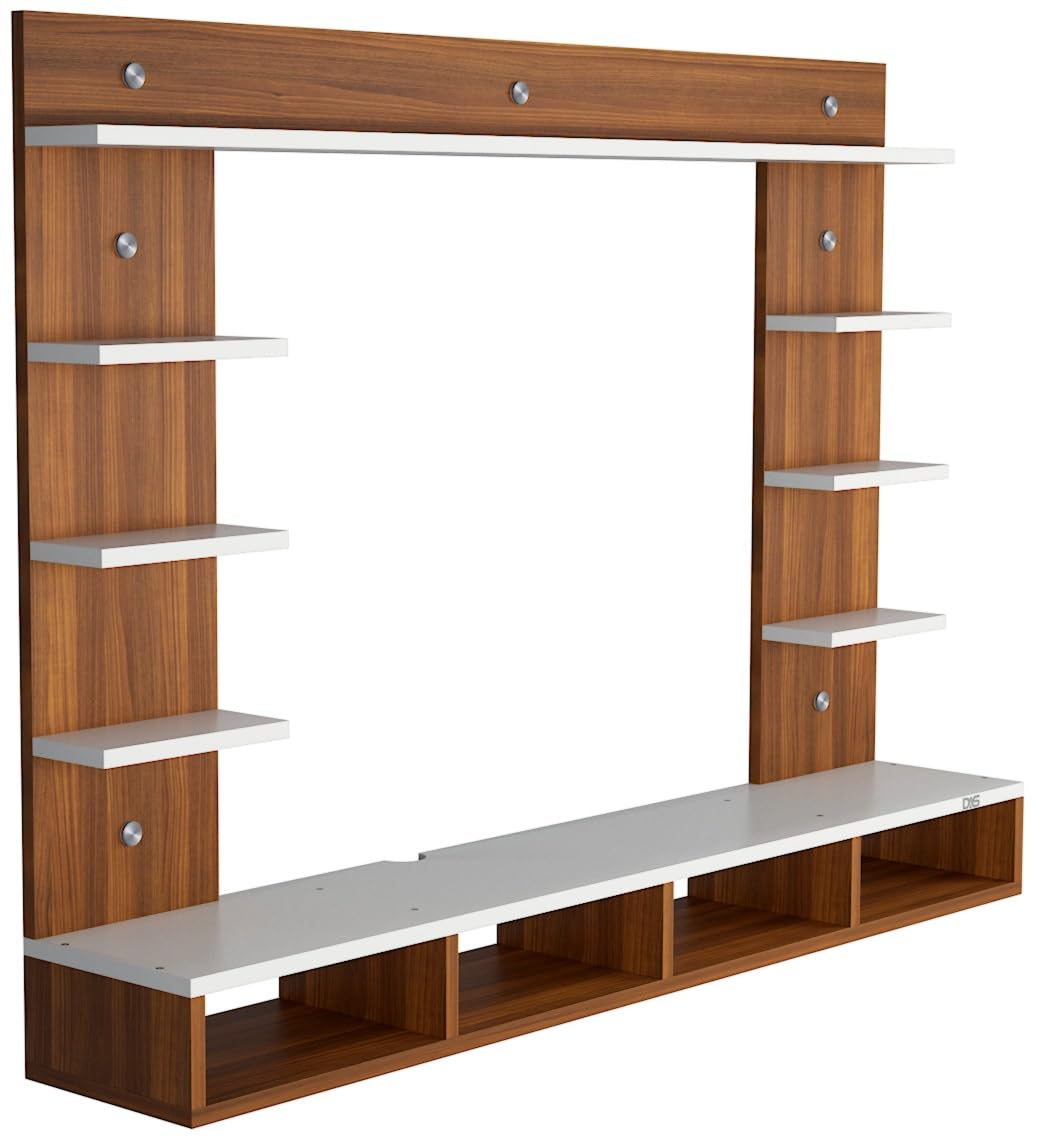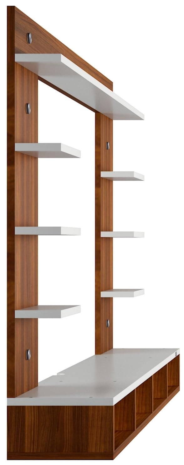 Merrill Engineered Wood Wall Mount TV Entertainment Unit/Tv Rack Set to Box Stand with Wall Shelves for Living Room Classic Walnut & Frosty White (Ideal for up to 43″) Screen