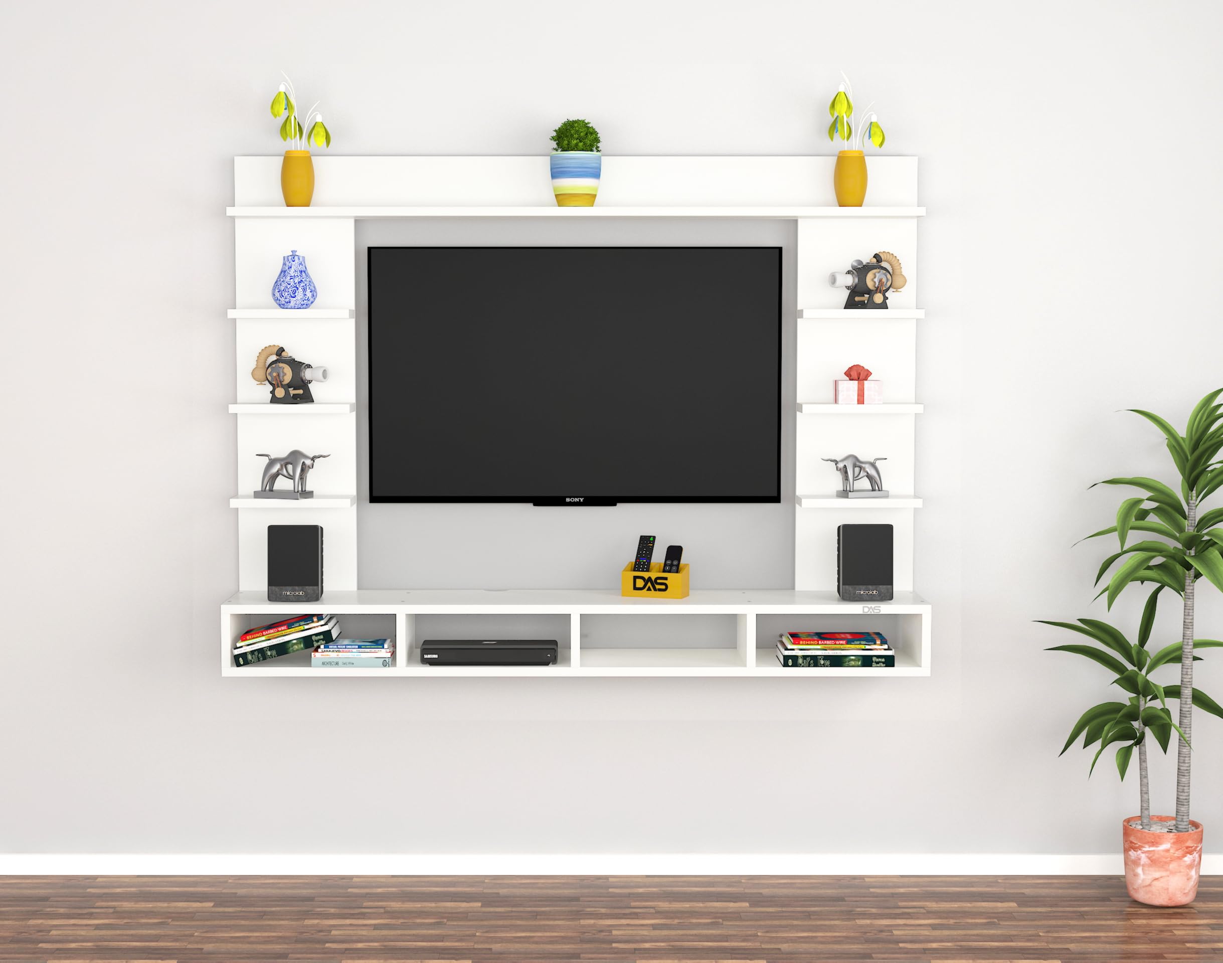 Merrill Engineered Wood Wall Mount TV Entertainment Unit/Tv Rack Set to Box Stand with Wall Shelves for Living Room Frosty White (Ideal for up to 43″) Screen