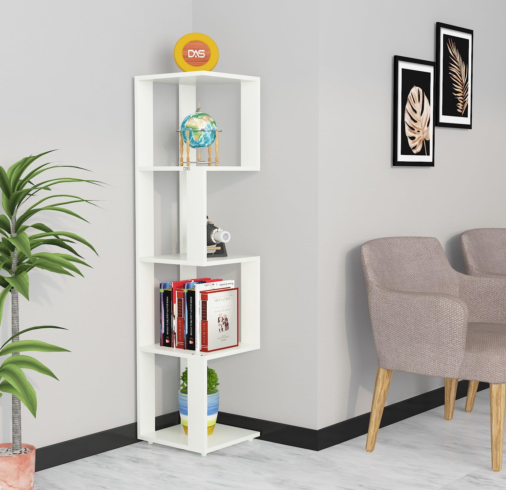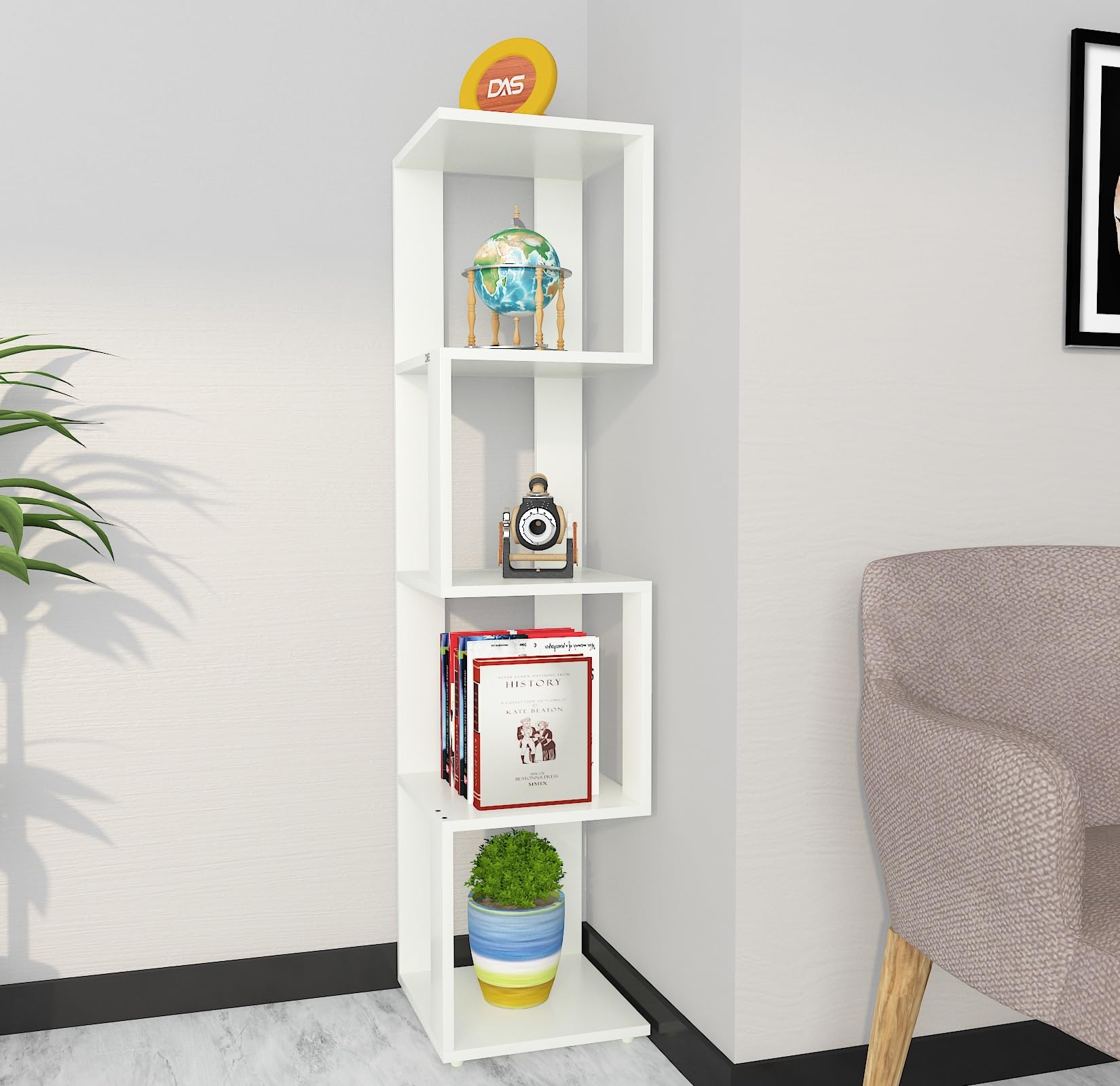 Material- Particle Board Size- 30 x 30 x 128.5 CM, Thickness- 17 MM, Weight- 8 KG. Product Type- Corner Shelf