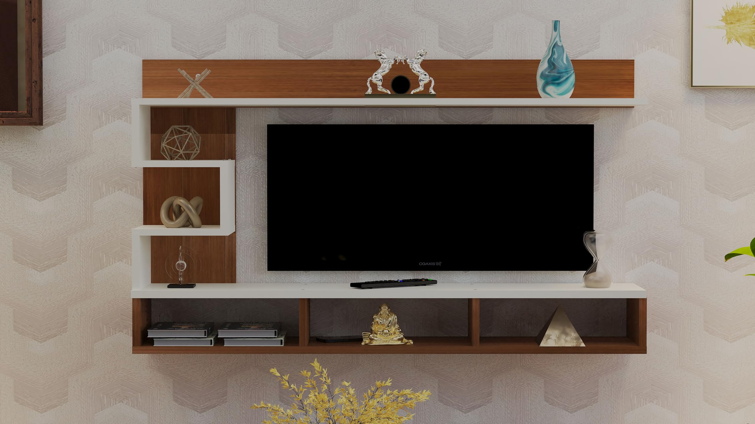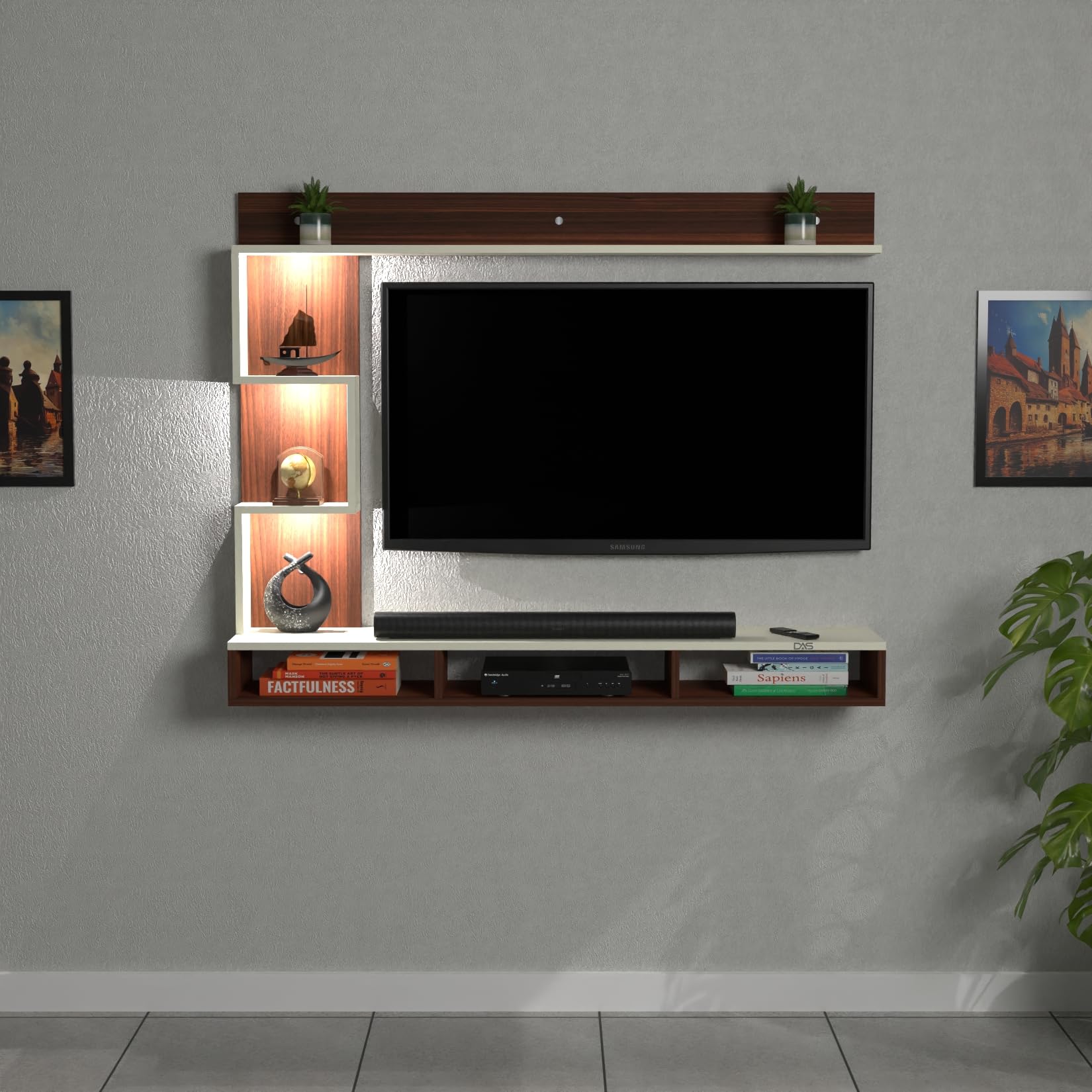 Proxima LED Light Installed Wall Mount Engineered Wood TV Entertainment Unit/Tv Rack with Wall Shelves for Living Room Classic Walnut & Frosty White (Ideal for up to 43″) Screen