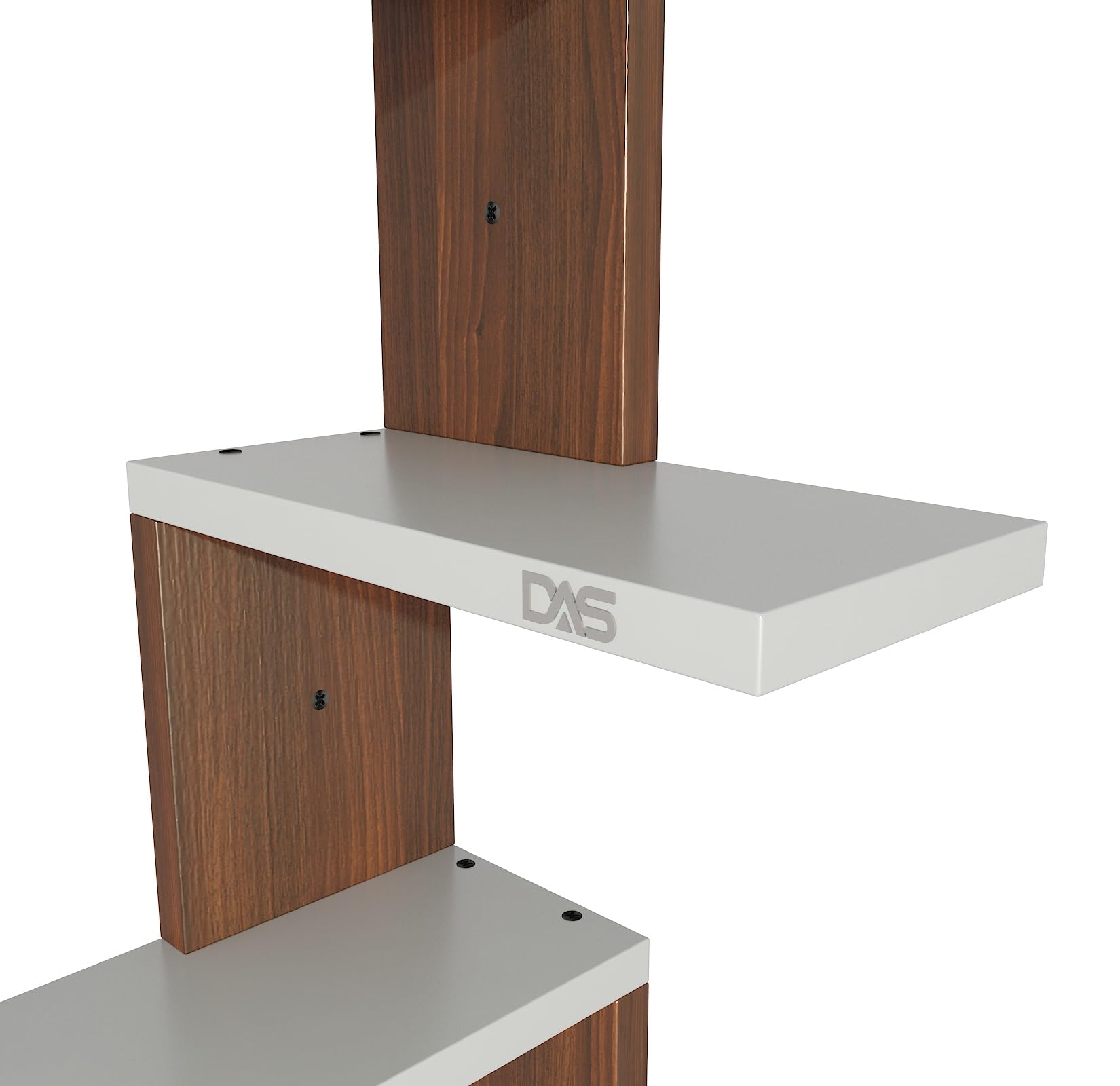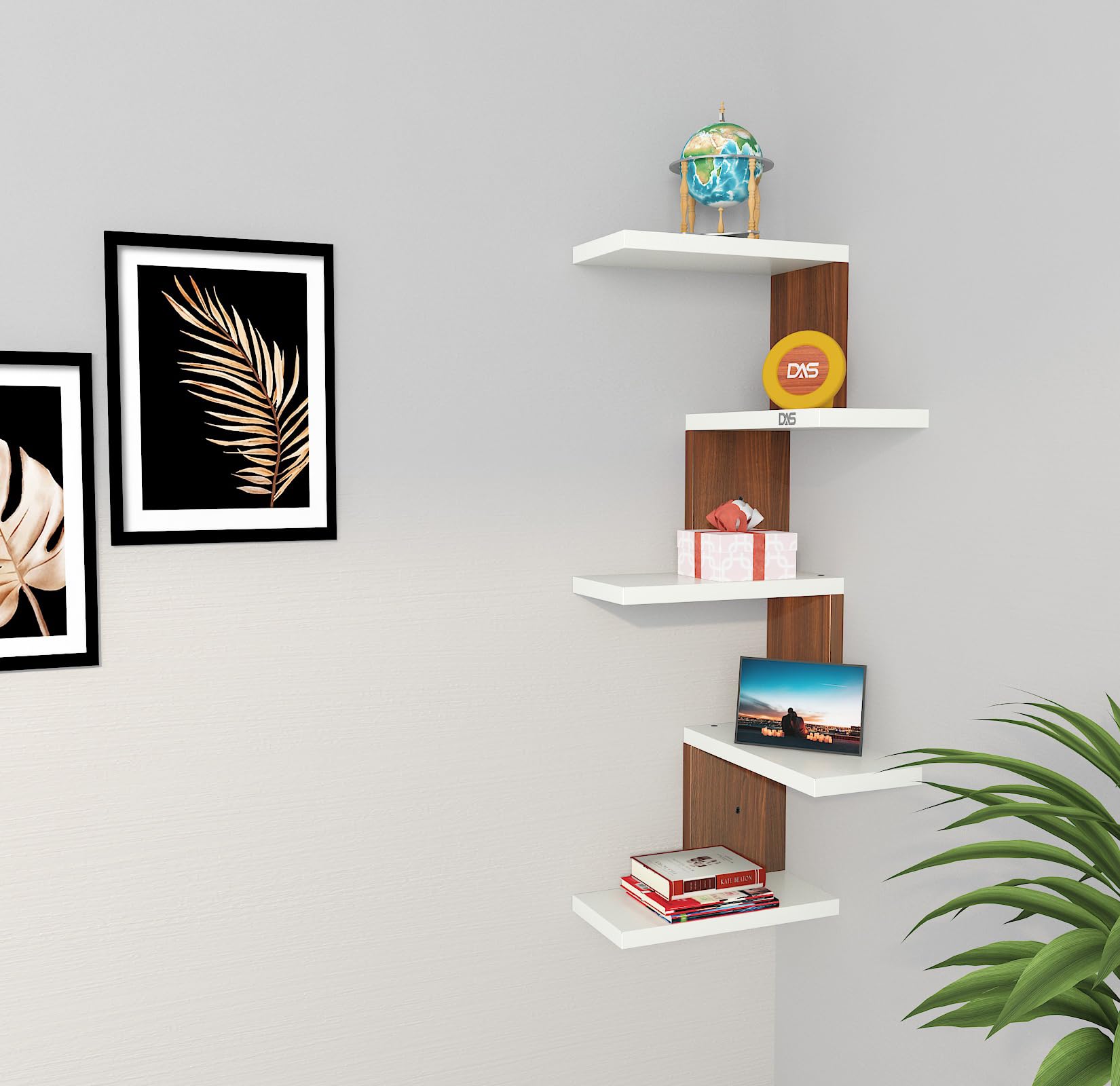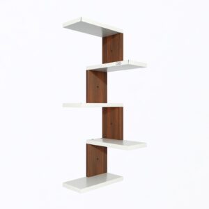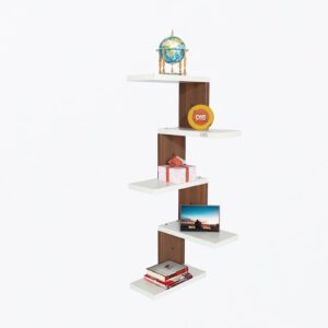 Rikard Engineered Wood Wall Mount Corner Shelf Display Rack Unit for Living Room- Classic Walnut & Frosty White