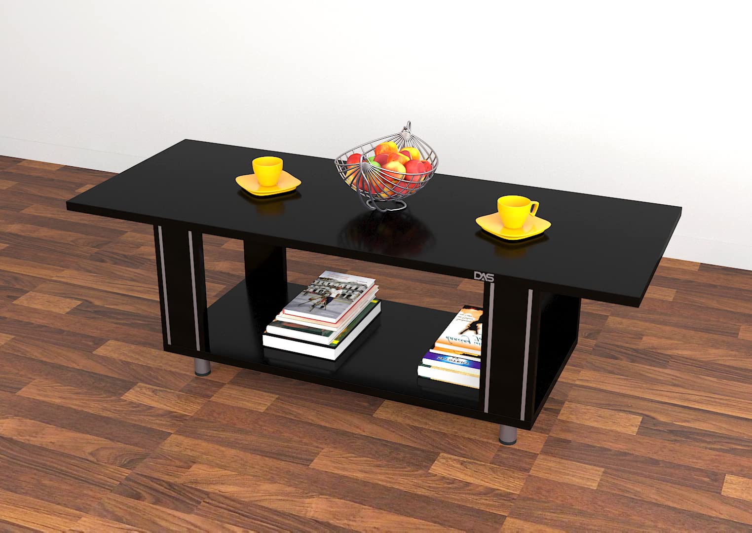 Serene Engineered Wood Contemporary Style Rectangular Coffee/Centre Table with Metal Legs Stripped Design for Living Room- Black
