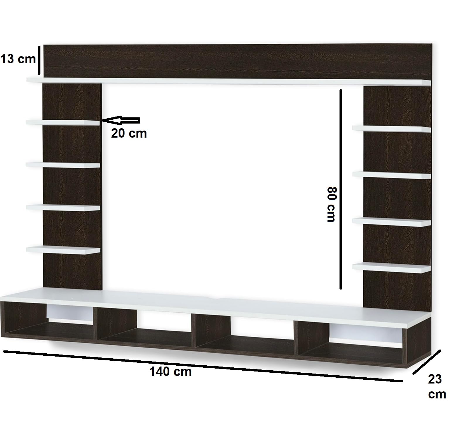 Material- Pre-laminated particle baord. Weight Capacity- 22 KG. Cable Management. Product Dimension- TV Cabinet- 140 x 23 x 80 CM cm Weight- 16.8 KG