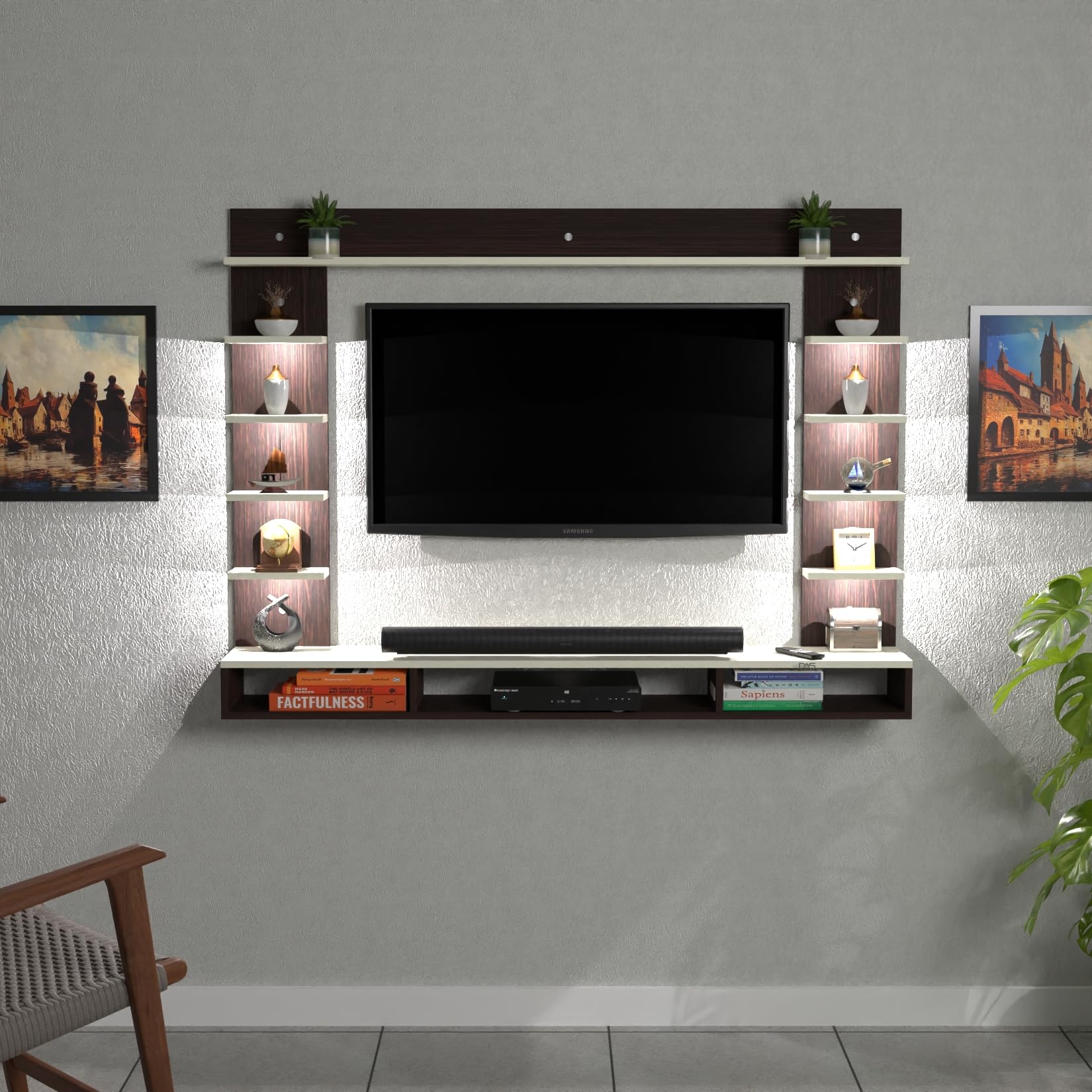 Color : Flowery Wenge-Frosty White Size : Ideal for Upto 43″ TV