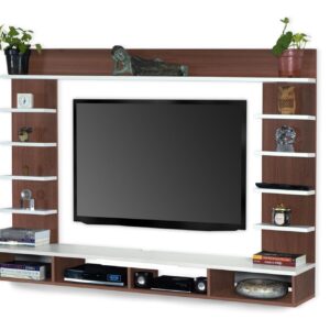 Stark Wall Mount Engineered Wood TV Entertainment Unit/Tv Rack Set to Box Stand with Wall Shelves for Living Room Classic Walnut & Frosty White Finish (Ideal for up to 43″) Screen