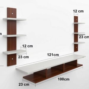 Material- Pre-laminated particle baord. Weight Capacity- 20 KG. Cable Management. Product Dimension- TV Cabinet- 121 x 23 x 70 CM cm Weight- 10.4 KG