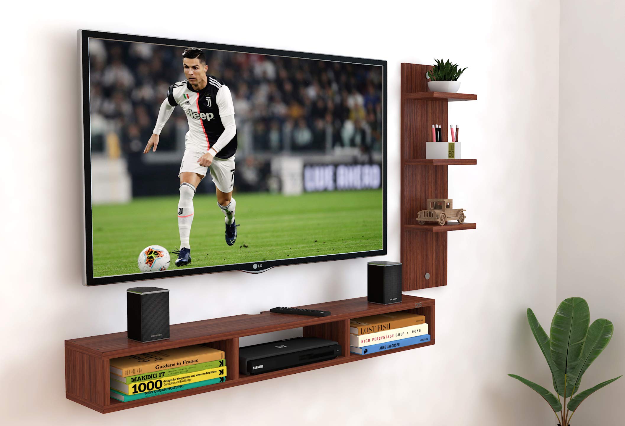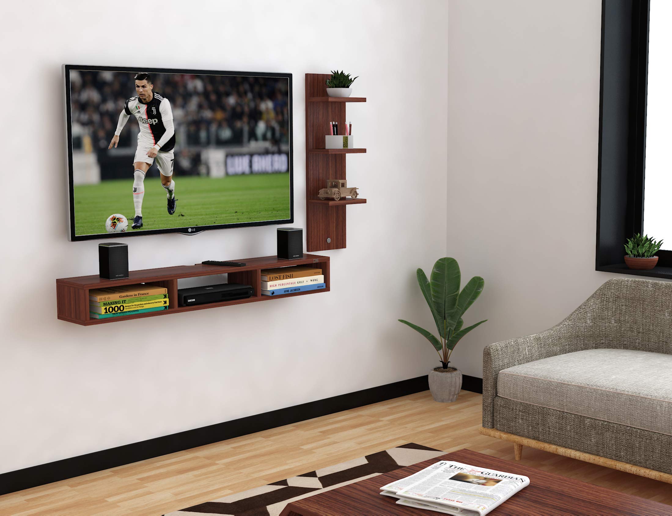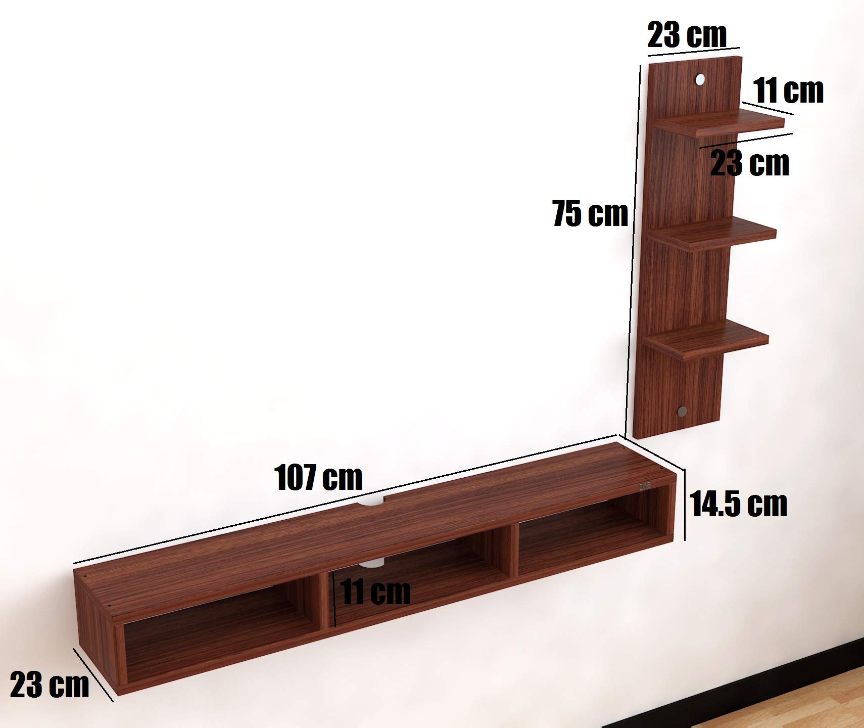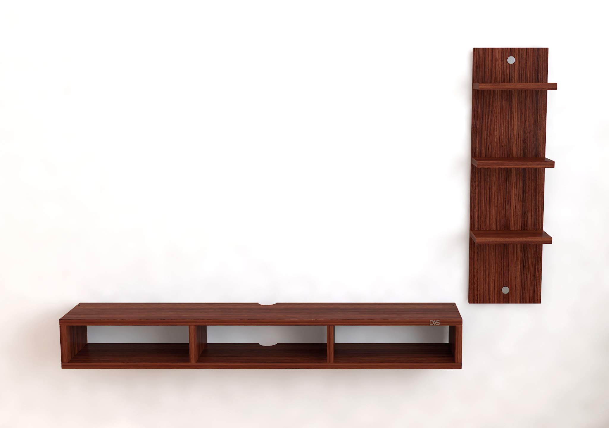 Wall Mount TV Entertainment Unit/with Set Top Box Stand and 3 Wall Shelves Display Rack Classic Walnut (Ideal for up to 48″) Screen- Bolivar