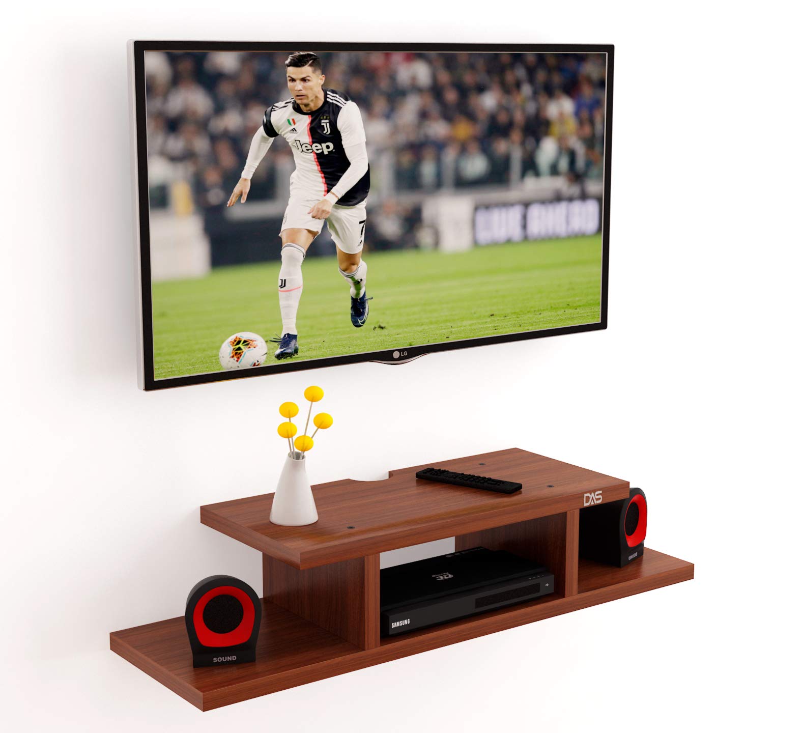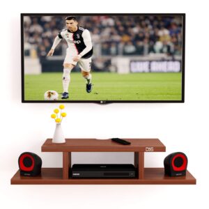 Wall Mount TV Entertainment Unit with Set Top Box Stand, Ideal for Living Room and Office Walls Classic Walnut- Lewis (Ideal for 24″ to 32″)
