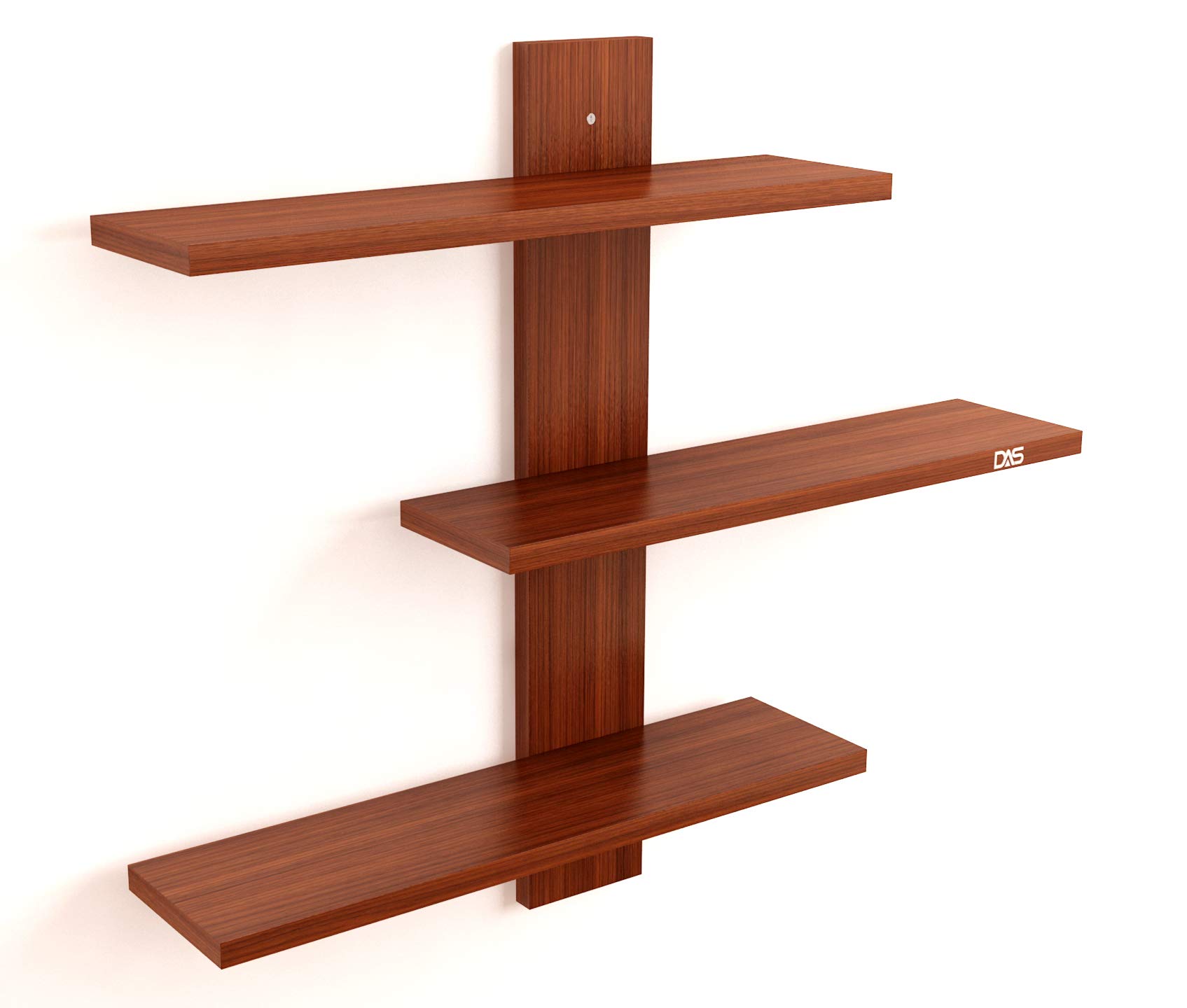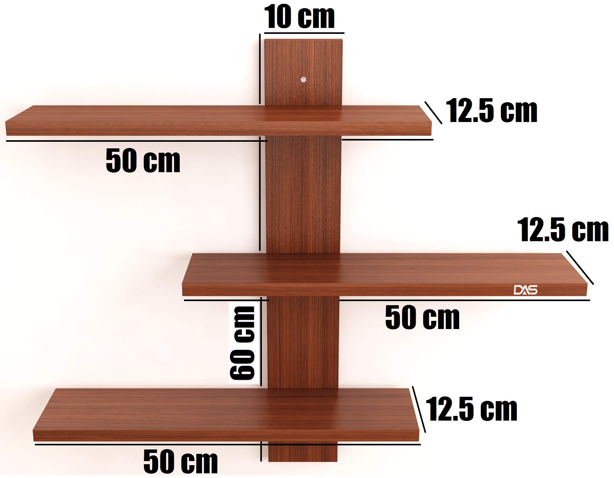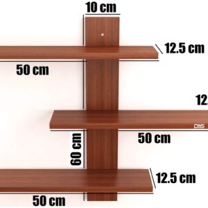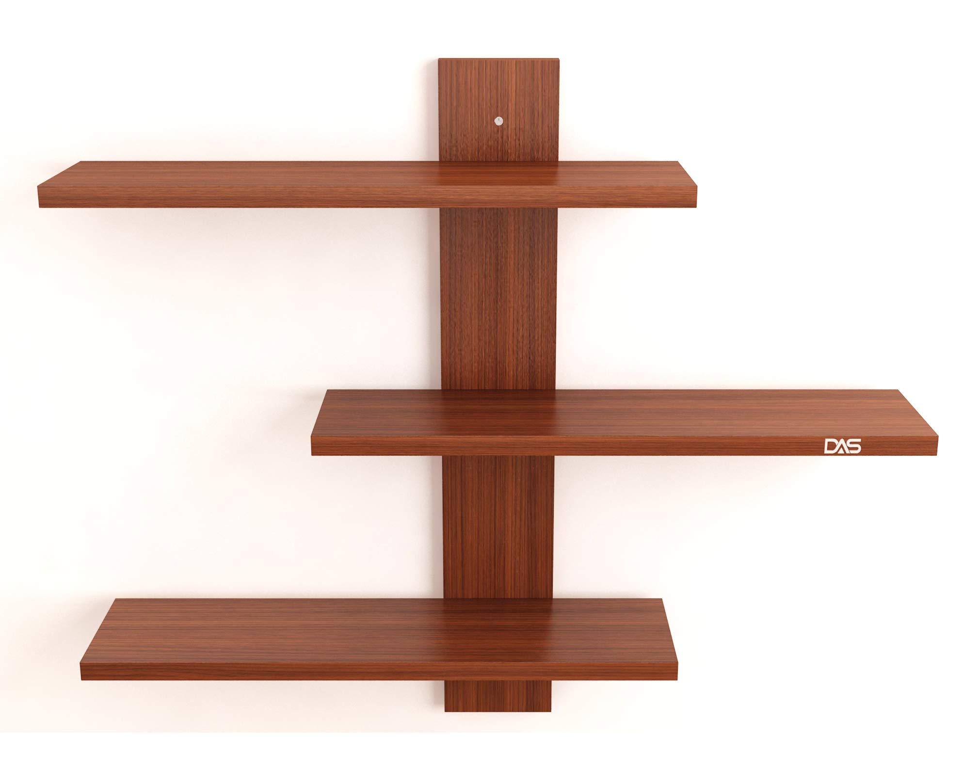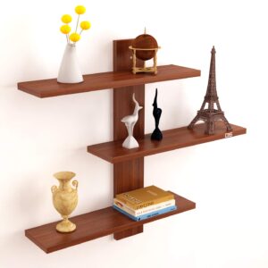 Wall Mounted Engineered Wood Wall Décor Shelf/Shelves Display Rack for Living Room Classic Walnut (3 Shelves)- Dorit
