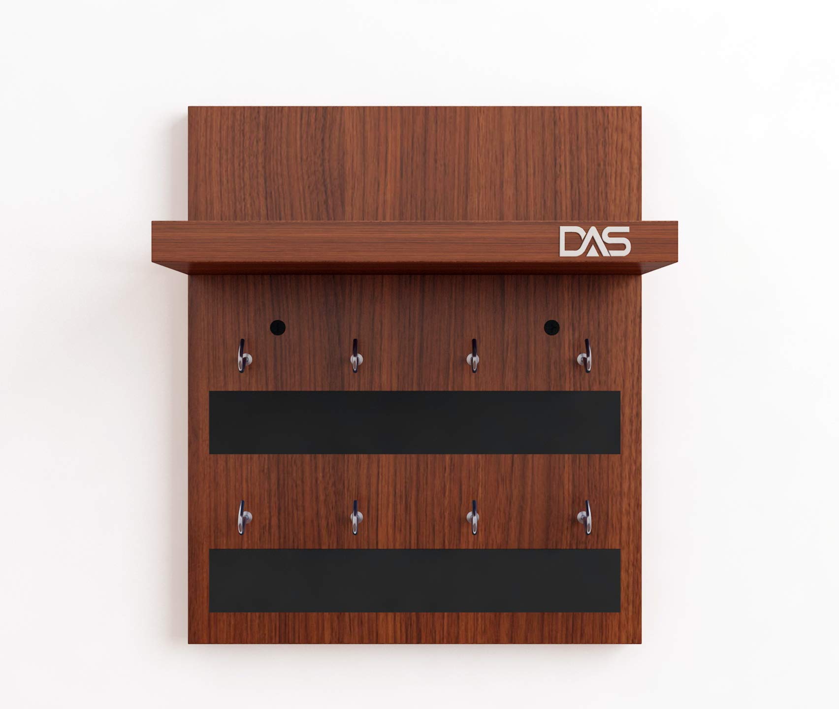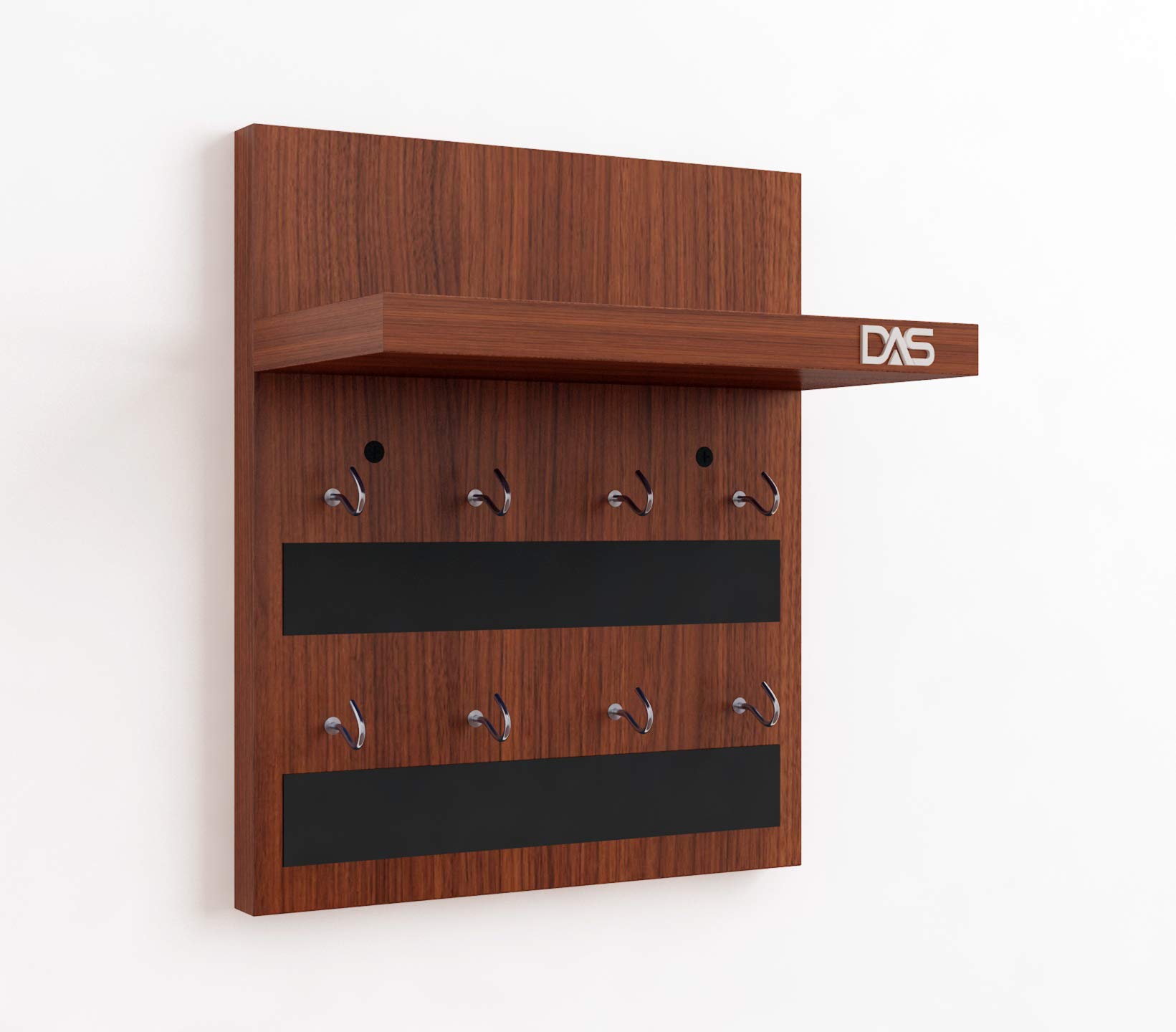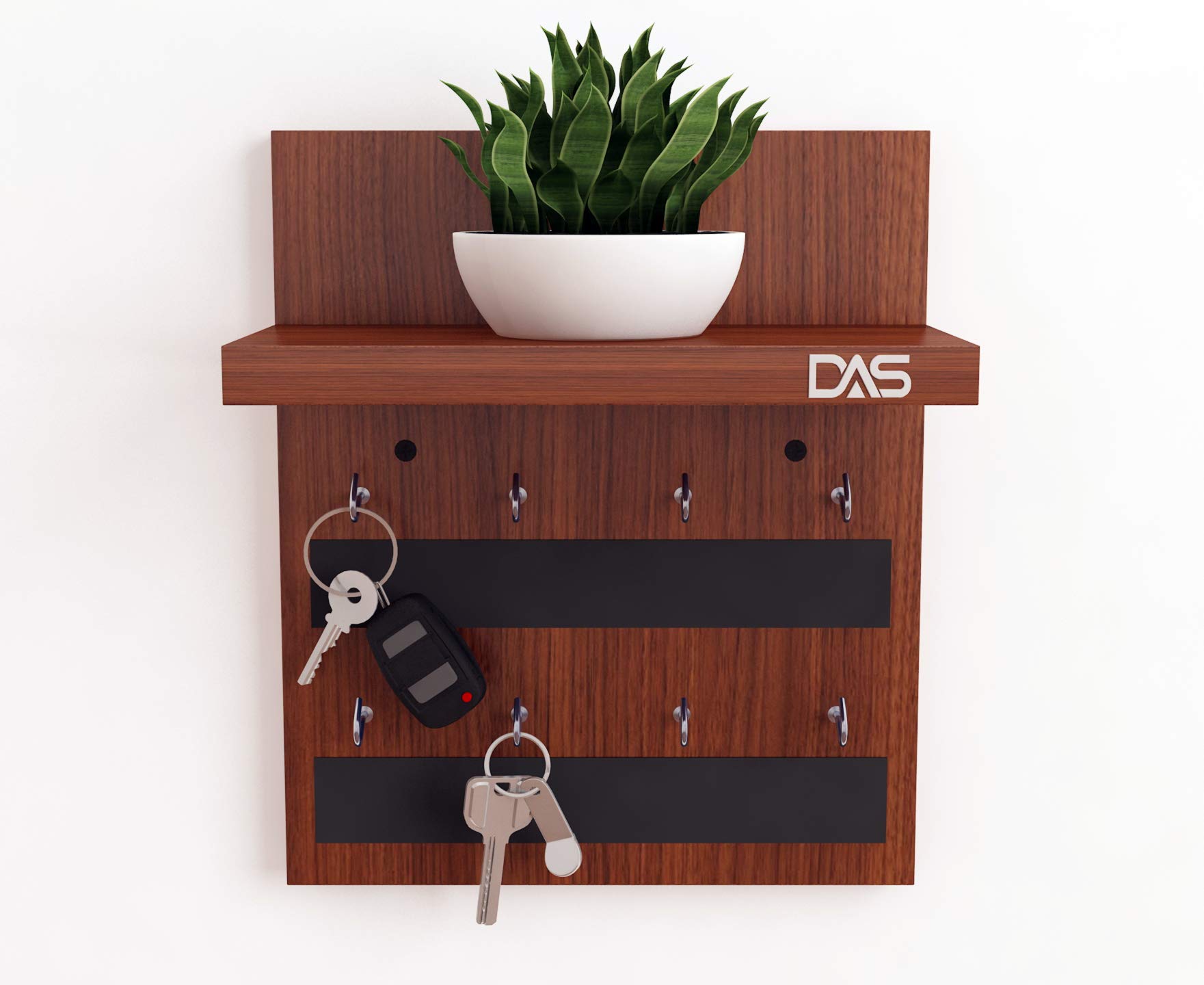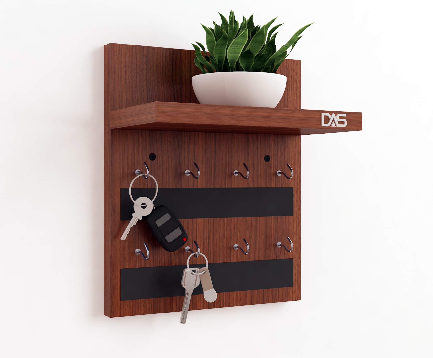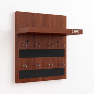 Wall Mounted Home Décor Key Chain Holder/Key Hooks Organizer with Wall Shelf Display Rack Classic is a multifunctional and stylish addition to any home. Crafted from durable engineered wood with a classic finish, this wall-mounted unit features multiple hooks for organizing keys, lanyards, and small accessories. Above the hooks, a compact shelf provides space to display decorative items such as small plants, photo frames, or collectibles. Its sleek design not only helps in decluttering entryways or living spaces but also enhances the aesthetic appeal of your home décor. Easy to install, this organizer combines functionality with elegance, making it an ideal choice for maintaining organization in style.
